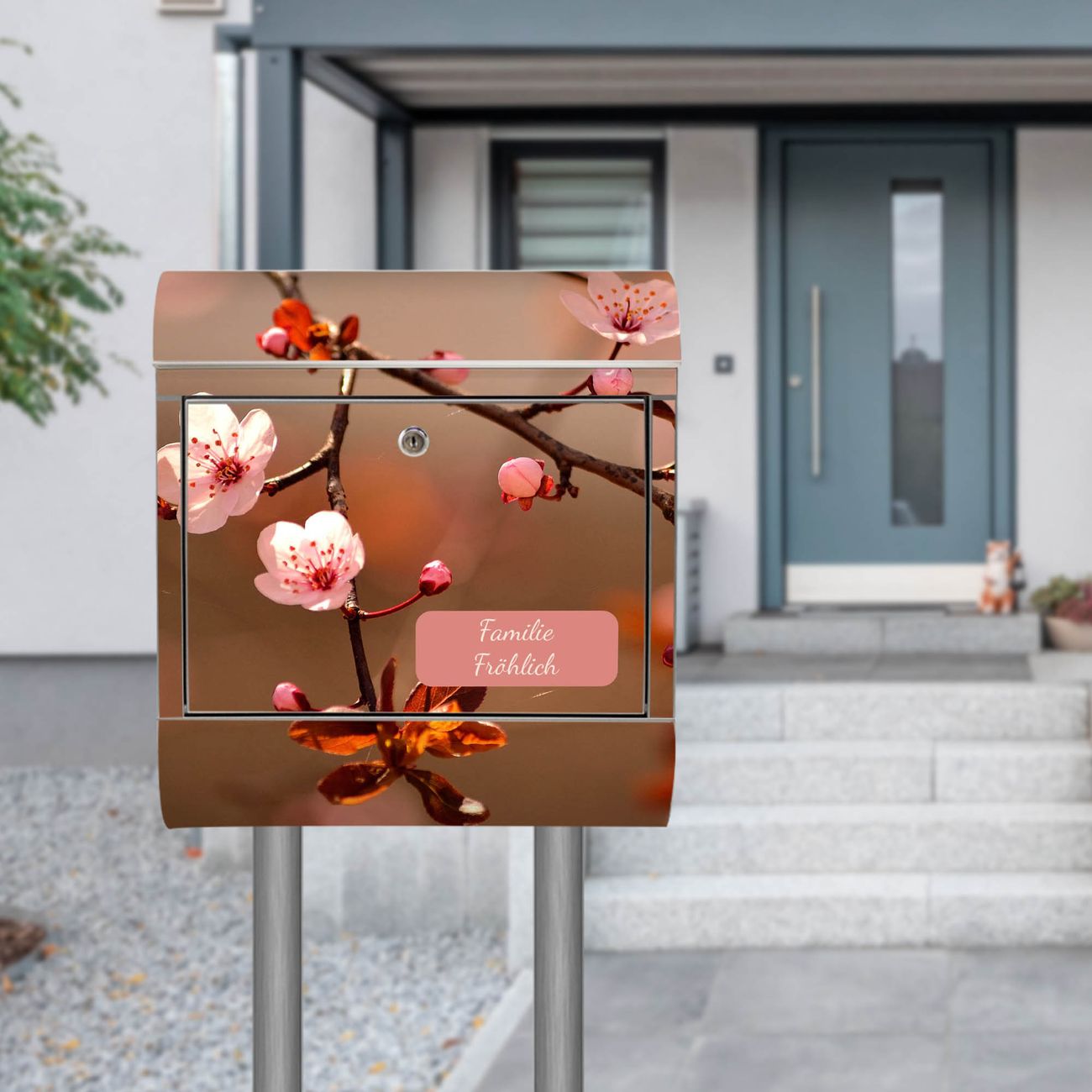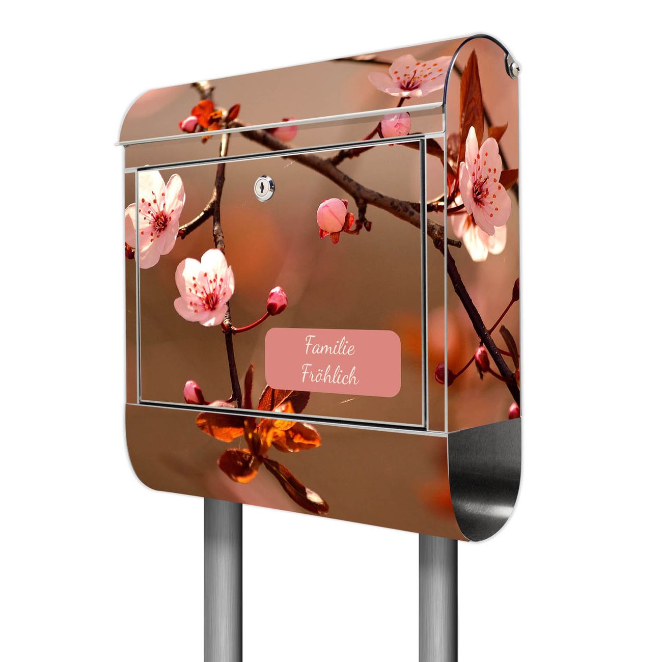 Standbriefkasten Edelstahl Blühender Kirschzweig