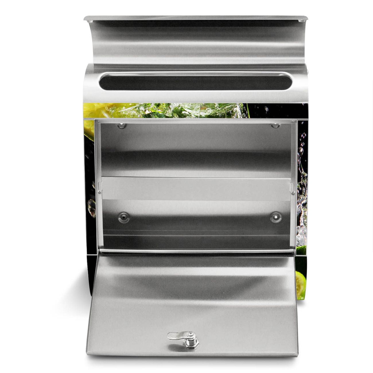Der banjado Edelstahl Standbriefkasten mit Motiv Brasilianischer Cocktail bietet Ihnen mit seinem Fassungsvermögen genügend Platz auch für große A4 Sendungen. Das integrierte Zeitungsfach eignet sich hervorragend, um unkompliziert die Tageszeitung zu fassen.