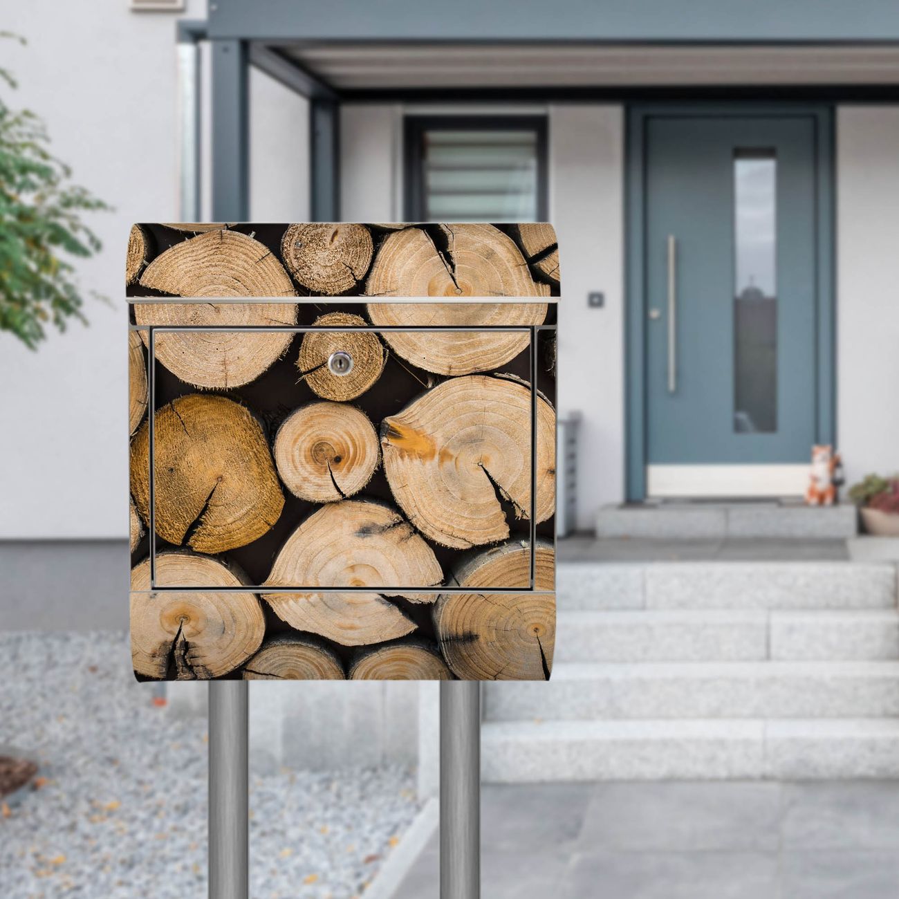 Standbriefkasten Edelstahl Brennholz