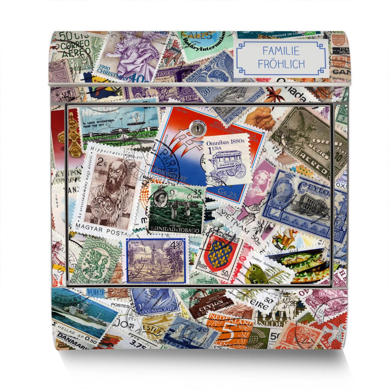 Der Motivstandbriefkasten hat ein sehr ansprechendes und ausgefallenes Design, damit entlocken Sie Ihren Nachbarn und dem Postboten ein Lächeln. Heben Sie Sich ab von der tristen grauen Masse, ohne auf Funktionalität zu verzichten. Der Briefkasten besteht aus hochwertigem 18/0 Edelstahl und die Wetter- und UV-resistenten Folie mit Briefmarken Motiv ist zusätzlich mit einem Schutzlaminat überzogen. Der Standbriefkasten wird mit Montagematerial und zwei Schlüsseln geliefert.
