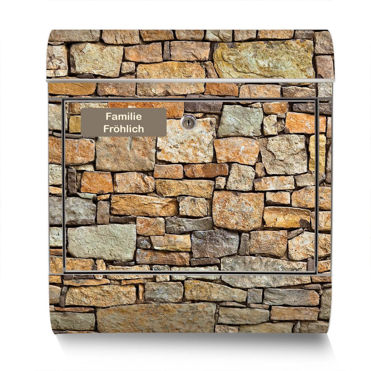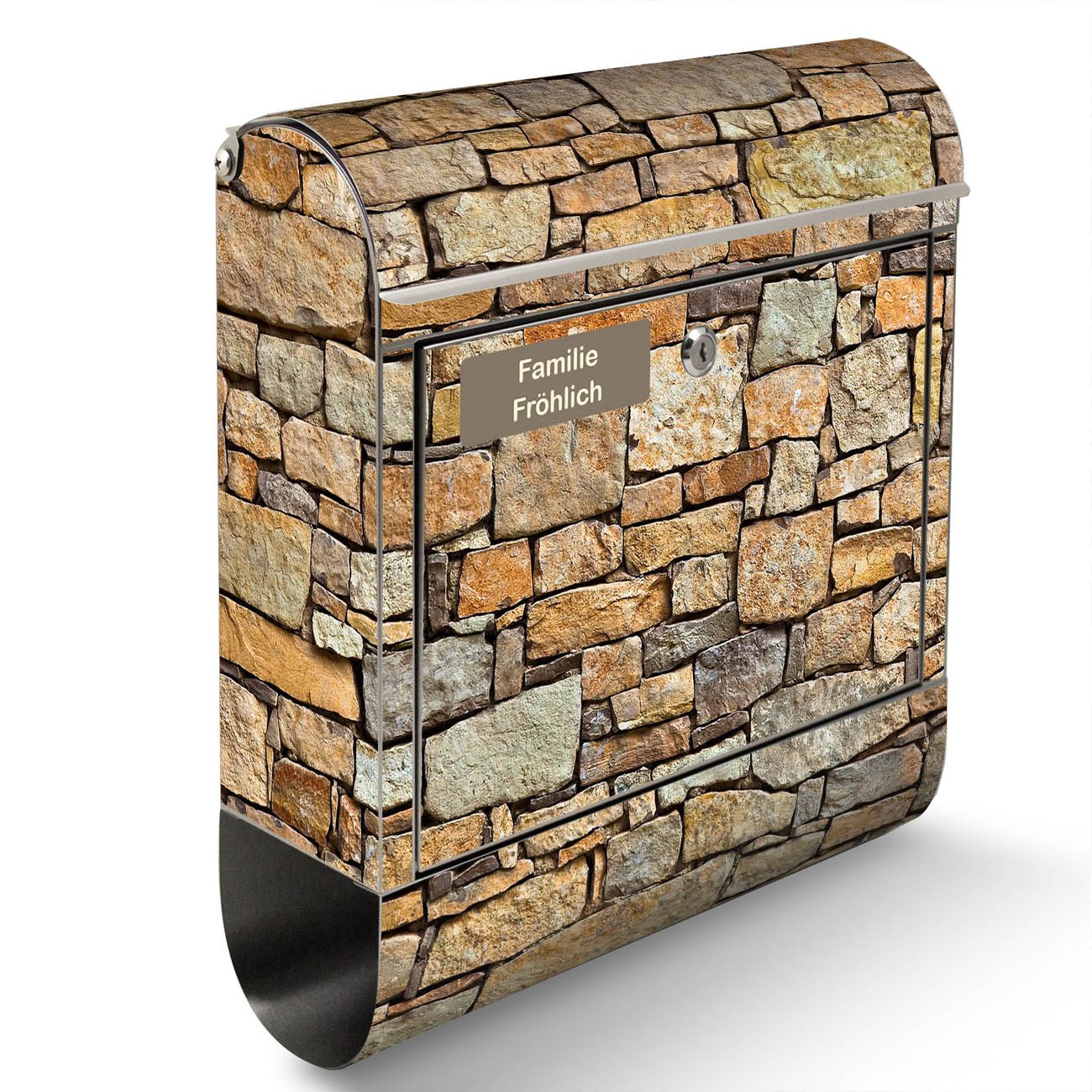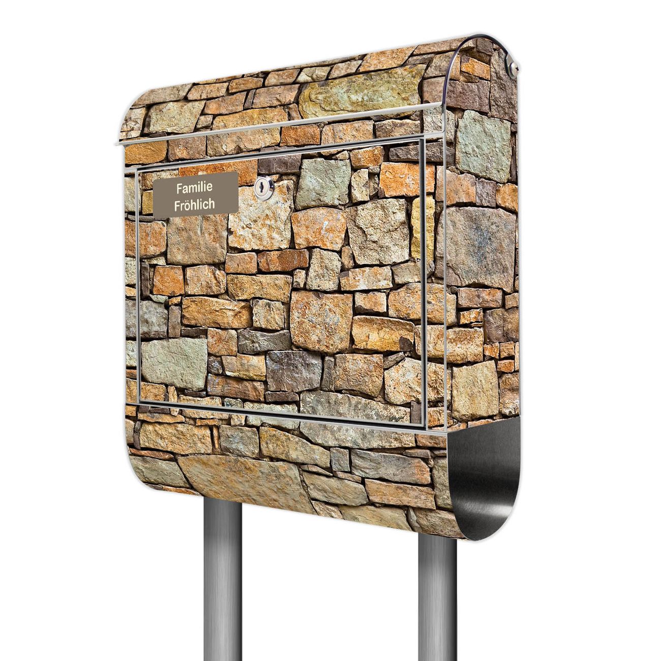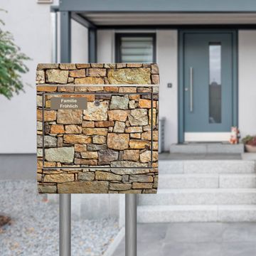 Standbriefkasten Edelstahl Bruchsteinmauer