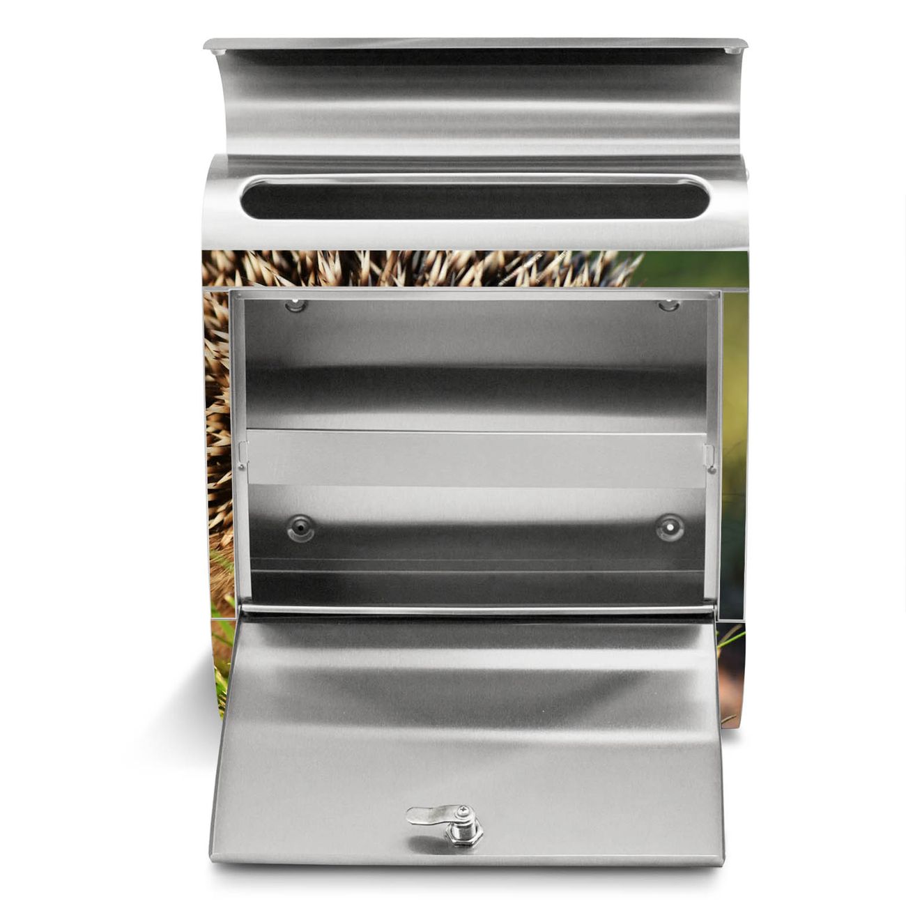 Der Motivstandbriefkasten hat ein sehr ansprechendes und ausgefallenes Design, damit entlocken Sie Ihren Nachbarn und dem Postboten ein Lächeln. Heben Sie Sich ab von der tristen grauen Masse, ohne auf Funktionalität zu verzichten. Der Briefkasten besteht aus hochwertigem 18/0 Edelstahl und die Wetter- und UV-resistenten Folie mit Bruno Motiv ist zusätzlich mit einem Schutzlaminat überzogen. Der Standbriefkasten wird mit Montagematerial und zwei Schlüsseln geliefert.