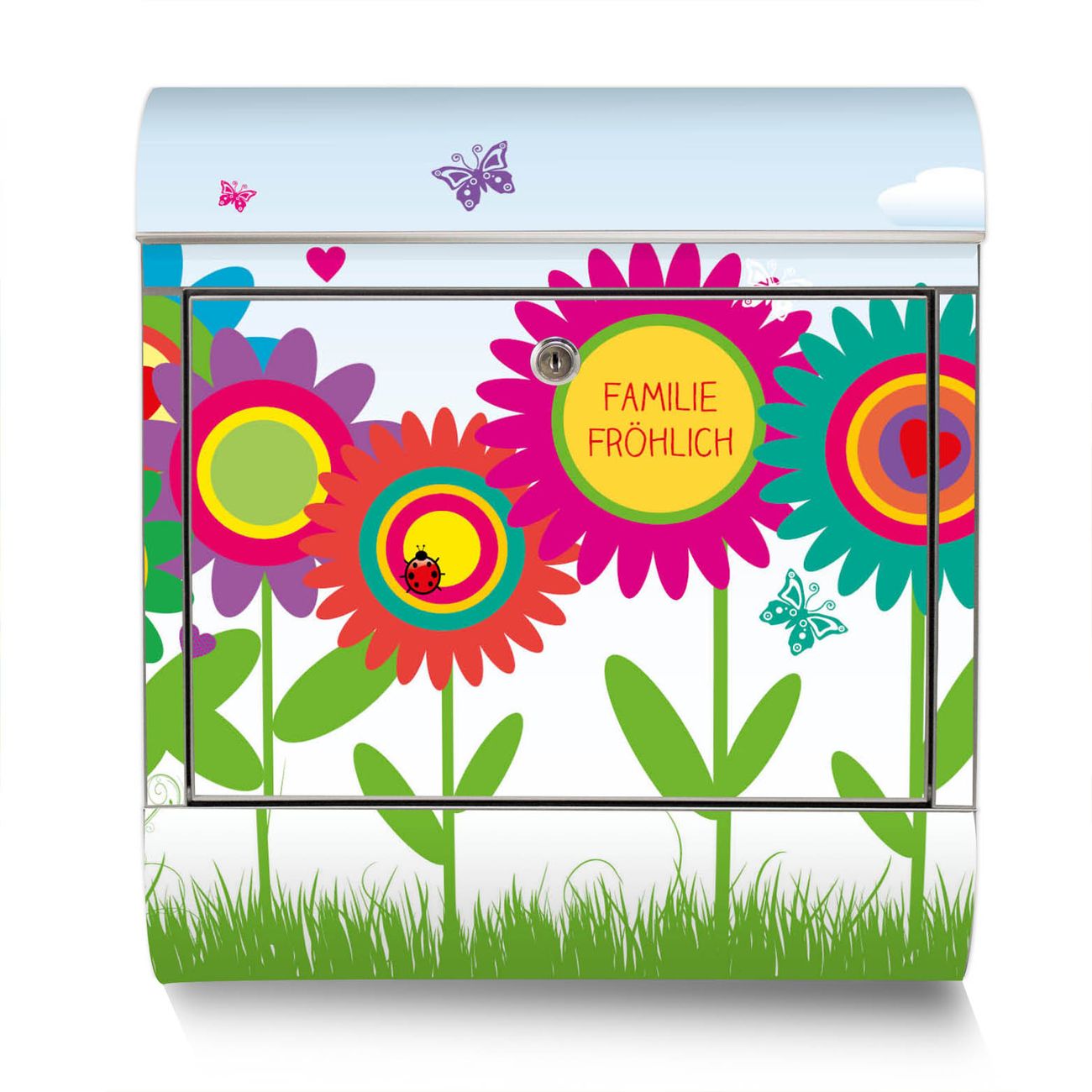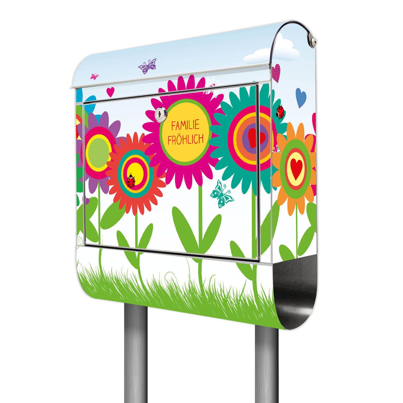 Standbriefkasten Edelstahl Bunte Blumen
