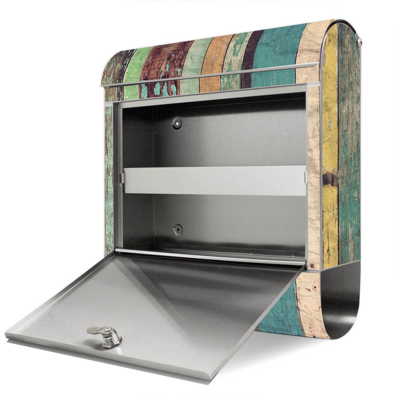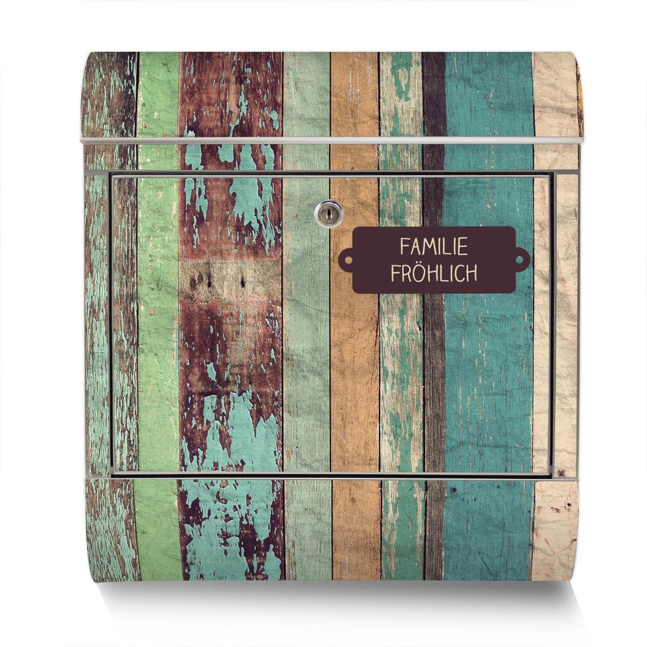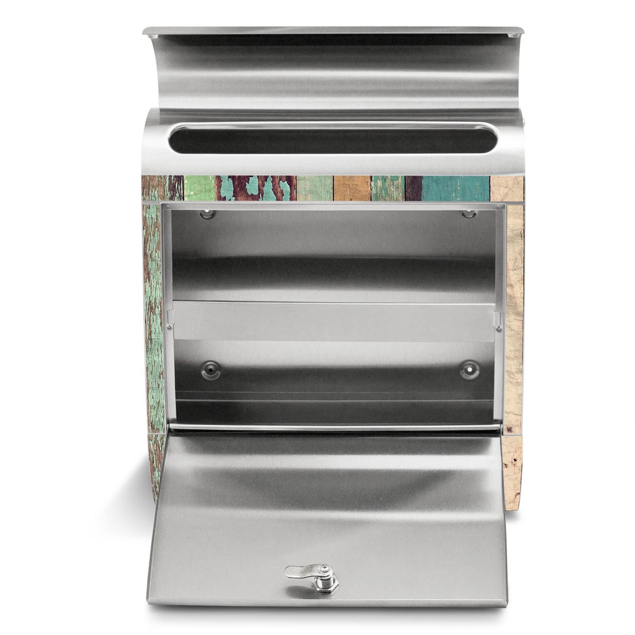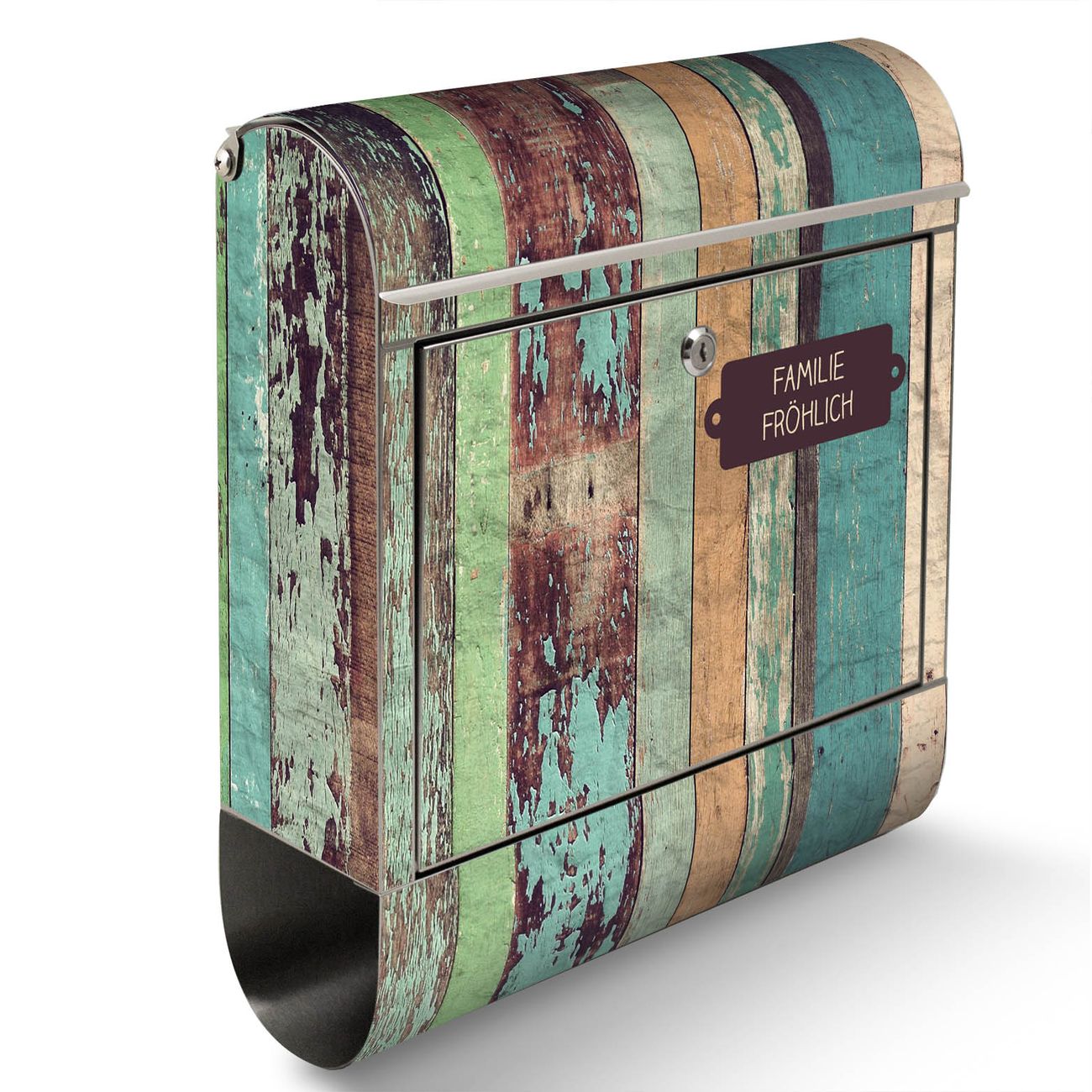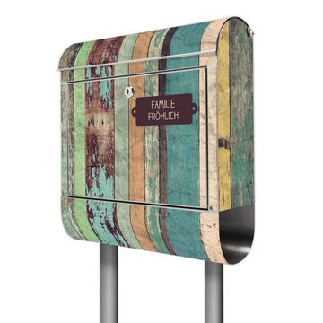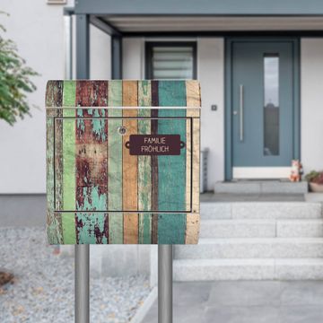 Standbriefkasten Edelstahl Bunte Bretterwand