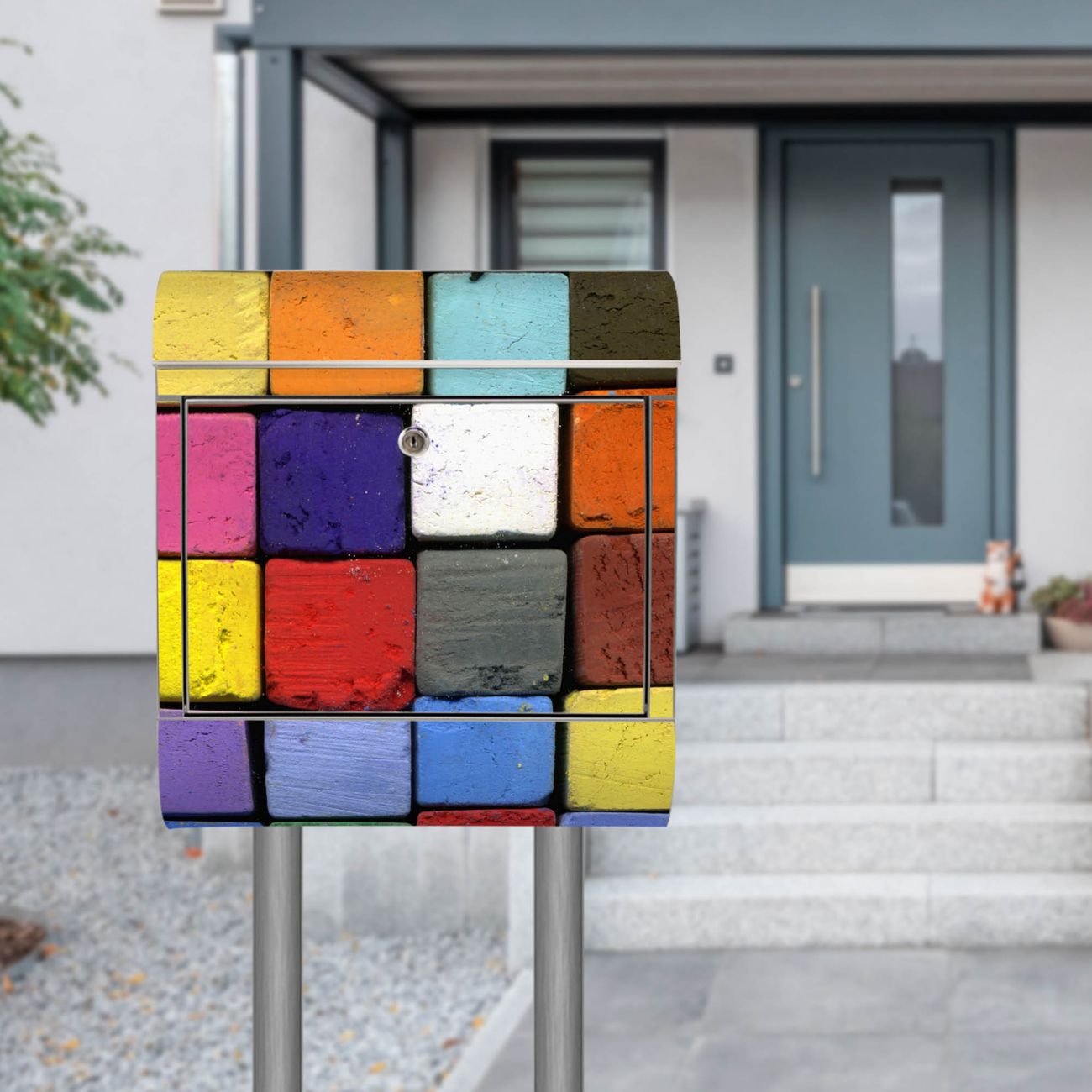 Standbriefkasten Edelstahl Bunte Kreide