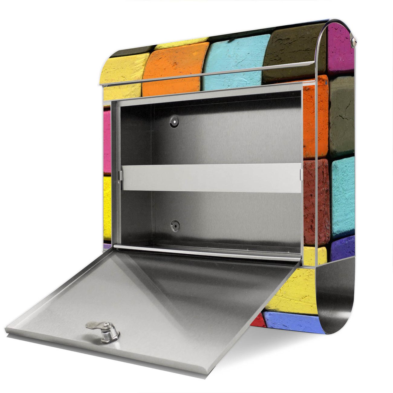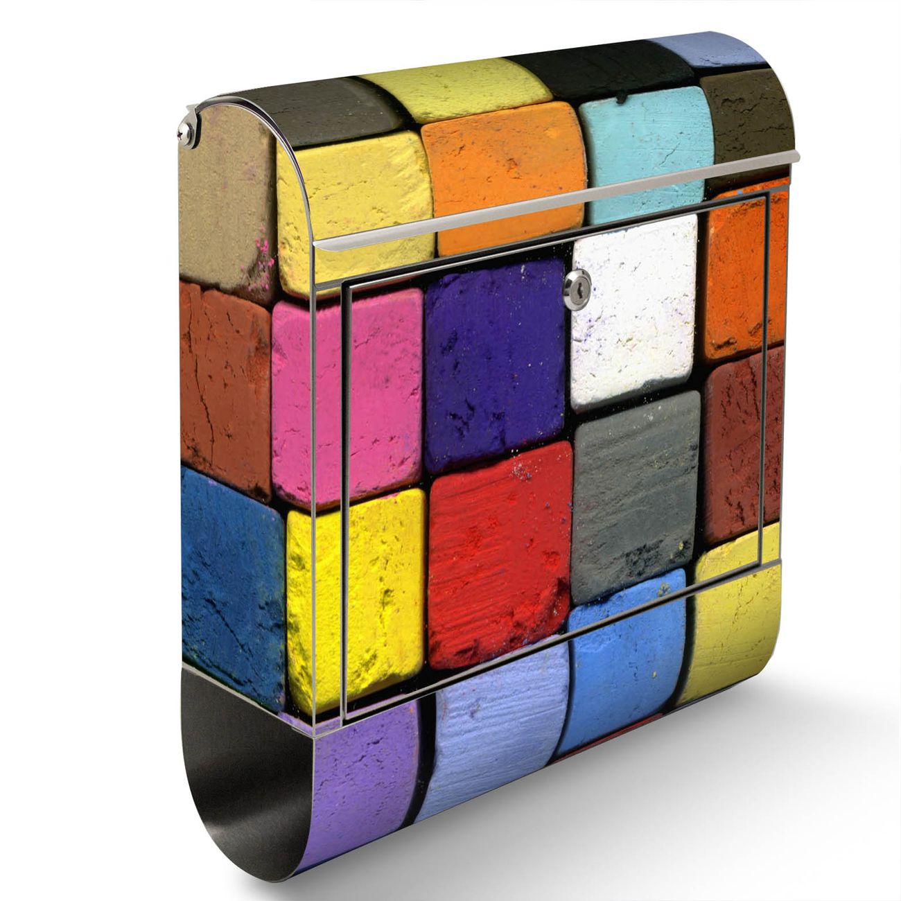 Der Motivstandbriefkasten hat ein sehr ansprechendes und ausgefallenes Design, damit entlocken Sie Ihren Nachbarn und dem Postboten ein Lächeln. Heben Sie Sich ab von der tristen grauen Masse, ohne auf Funktionalität zu verzichten. Der Briefkasten besteht aus hochwertigem 18/0 Edelstahl und die Wetter- und UV-resistenten Folie mit Bunte Kreide Motiv ist zusätzlich mit einem Schutzlaminat überzogen. Der Standbriefkasten wird mit Montagematerial und zwei Schlüsseln geliefert.