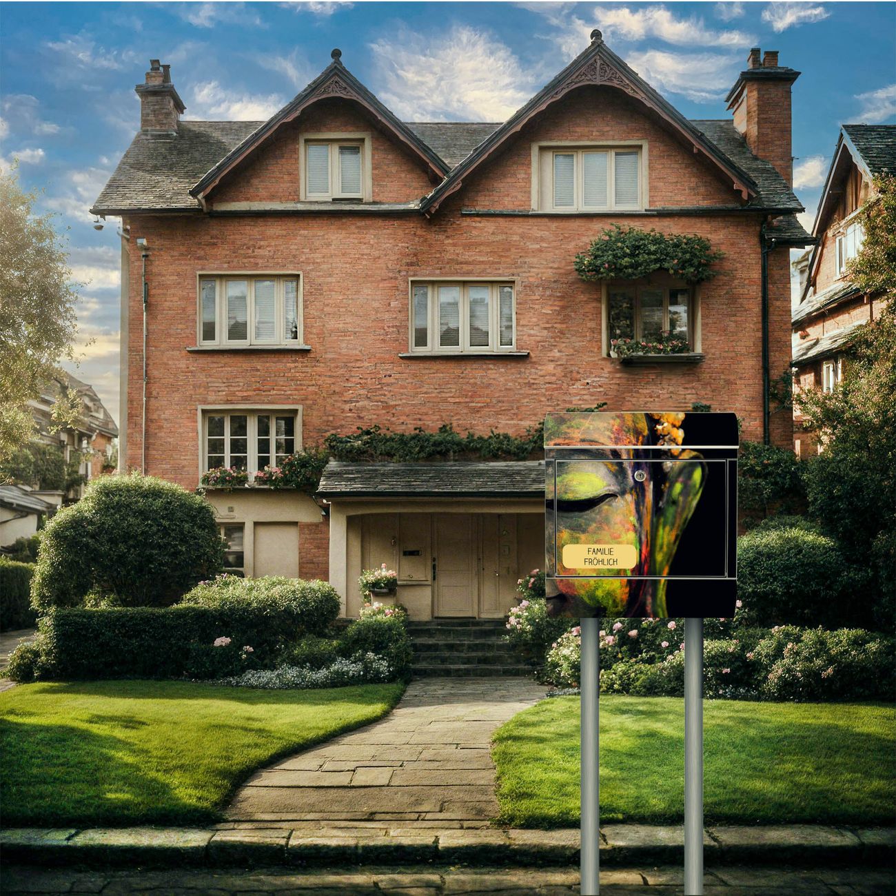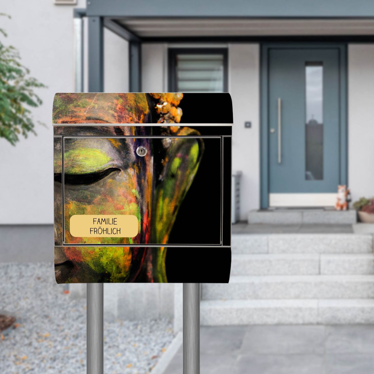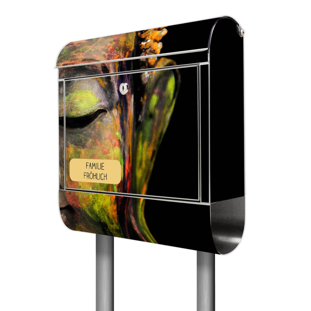 Standbriefkasten Edelstahl Bunter Buddha