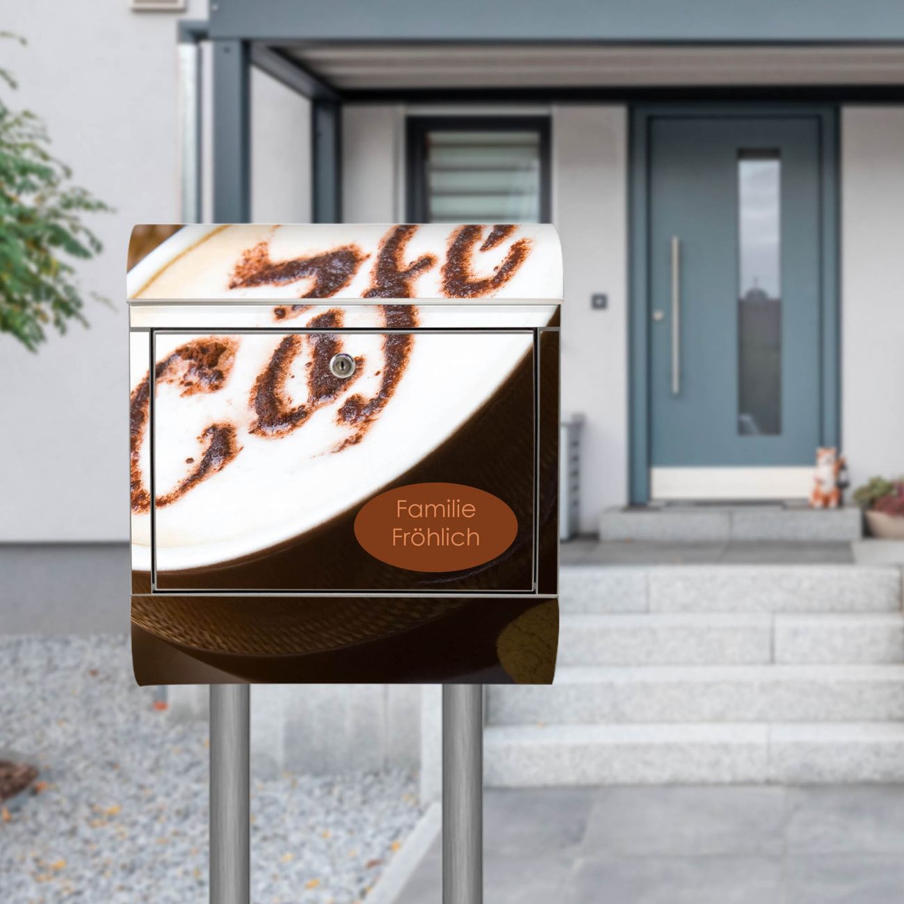 Der Motivstandbriefkasten hat ein sehr ansprechendes und ausgefallenes Design, damit entlocken Sie Ihren Nachbarn und dem Postboten ein Lächeln. Heben Sie Sich ab von der tristen grauen Masse, ohne auf Funktionalität zu verzichten. Der Briefkasten besteht aus hochwertigem 18/0 Edelstahl und die Wetter- und UV-resistenten Folie mit Cafe Motiv ist zusätzlich mit einem Schutzlaminat überzogen. Der Standbriefkasten wird mit Montagematerial und zwei Schlüsseln geliefert.