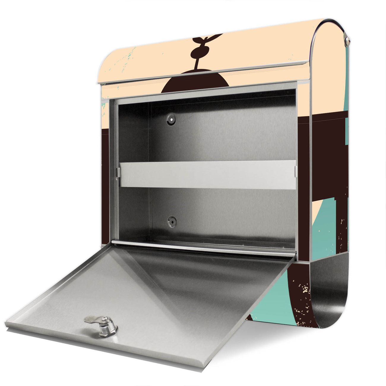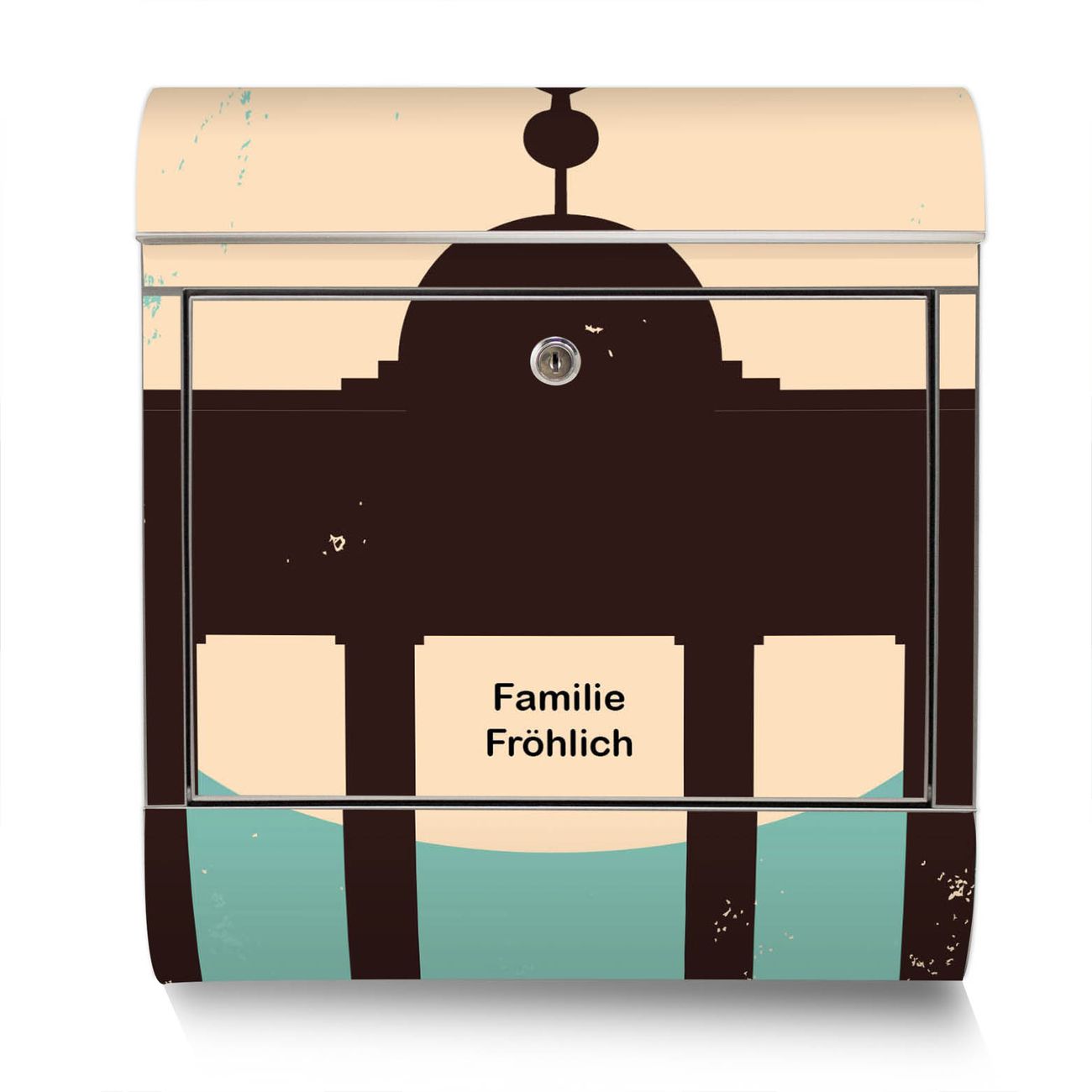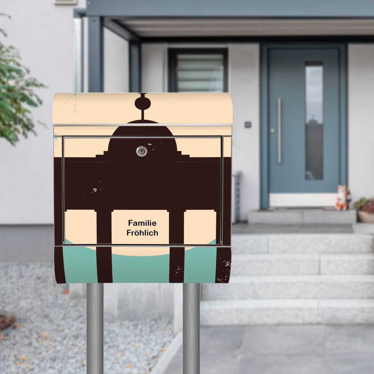 Der banjado Edelstahl Standbriefkasten mit Motiv City Poster Berlin und eigenem Wunschtext bietet Ihnen mit seinem Fassungsvermögen genügend Platz auch für große A4 Sendungen. Das integrierte Zeitungsfach eignet sich hervorragend, um unkompliziert die Tageszeitung zu fassen.