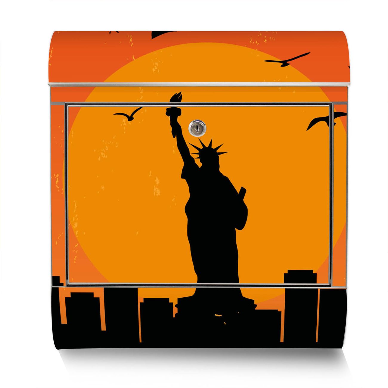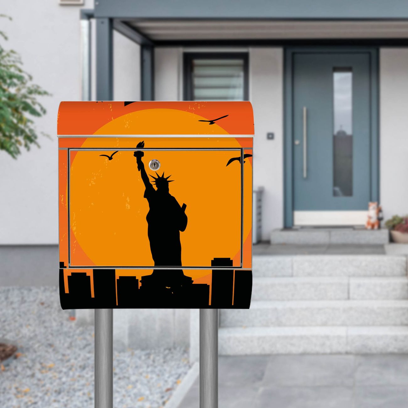 Der Motivstandbriefkasten hat ein sehr ansprechendes und ausgefallenes Design, damit entlocken Sie Ihren Nachbarn und dem Postboten ein Lächeln. Heben Sie Sich ab von der tristen grauen Masse, ohne auf Funktionalität zu verzichten. Der Briefkasten besteht aus hochwertigem 18/0 Edelstahl und die Wetter- und UV-resistenten Folie mit City Poster New York Motiv ist zusätzlich mit einem Schutzlaminat überzogen. Der Standbriefkasten wird mit Montagematerial und zwei Schlüsseln geliefert.