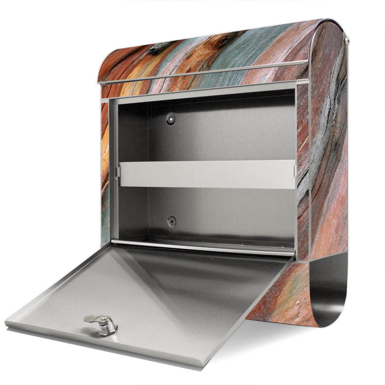 Der Motivstandbriefkasten hat ein sehr ansprechendes und ausgefallenes Design, damit entlocken Sie Ihren Nachbarn und dem Postboten ein Lächeln. Heben Sie Sich ab von der tristen grauen Masse, ohne auf Funktionalität zu verzichten. Der Briefkasten besteht aus hochwertigem 18/0 Edelstahl und die Wetter- und UV-resistenten Folie mit Coloured Wood Motiv ist zusätzlich mit einem Schutzlaminat überzogen. Der Standbriefkasten wird mit Montagematerial und zwei Schlüsseln geliefert.