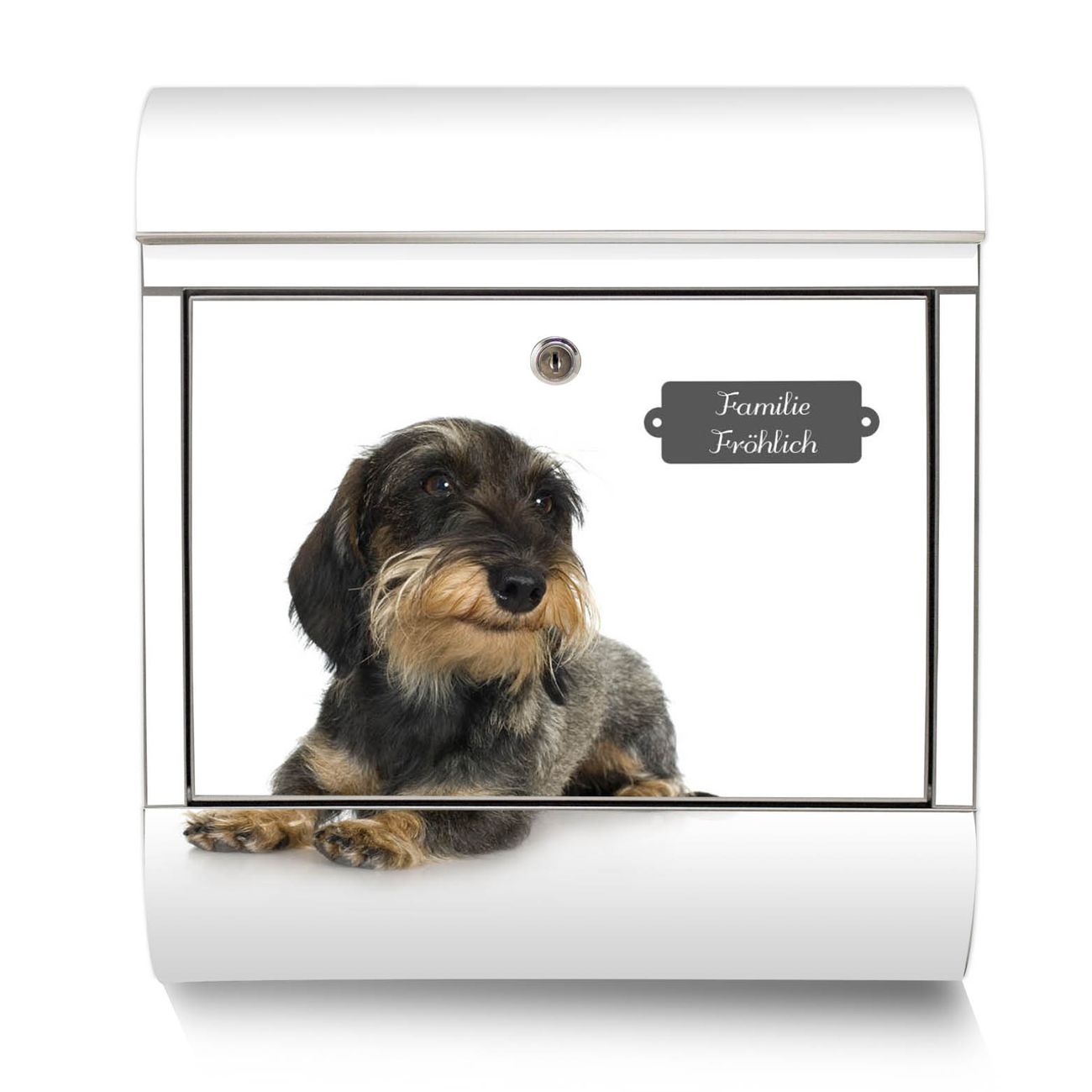 Der Motivstandbriefkasten hat ein sehr ansprechendes und ausgefallenes Design, damit entlocken Sie Ihren Nachbarn und dem Postboten ein Lächeln. Heben Sie Sich ab von der tristen grauen Masse, ohne auf Funktionalität zu verzichten. Der Briefkasten besteht aus hochwertigem 18/0 Edelstahl und die Wetter- und UV-resistenten Folie mit Dackel Motiv ist zusätzlich mit einem Schutzlaminat überzogen. Der Standbriefkasten wird mit Montagematerial und zwei Schlüsseln geliefert.