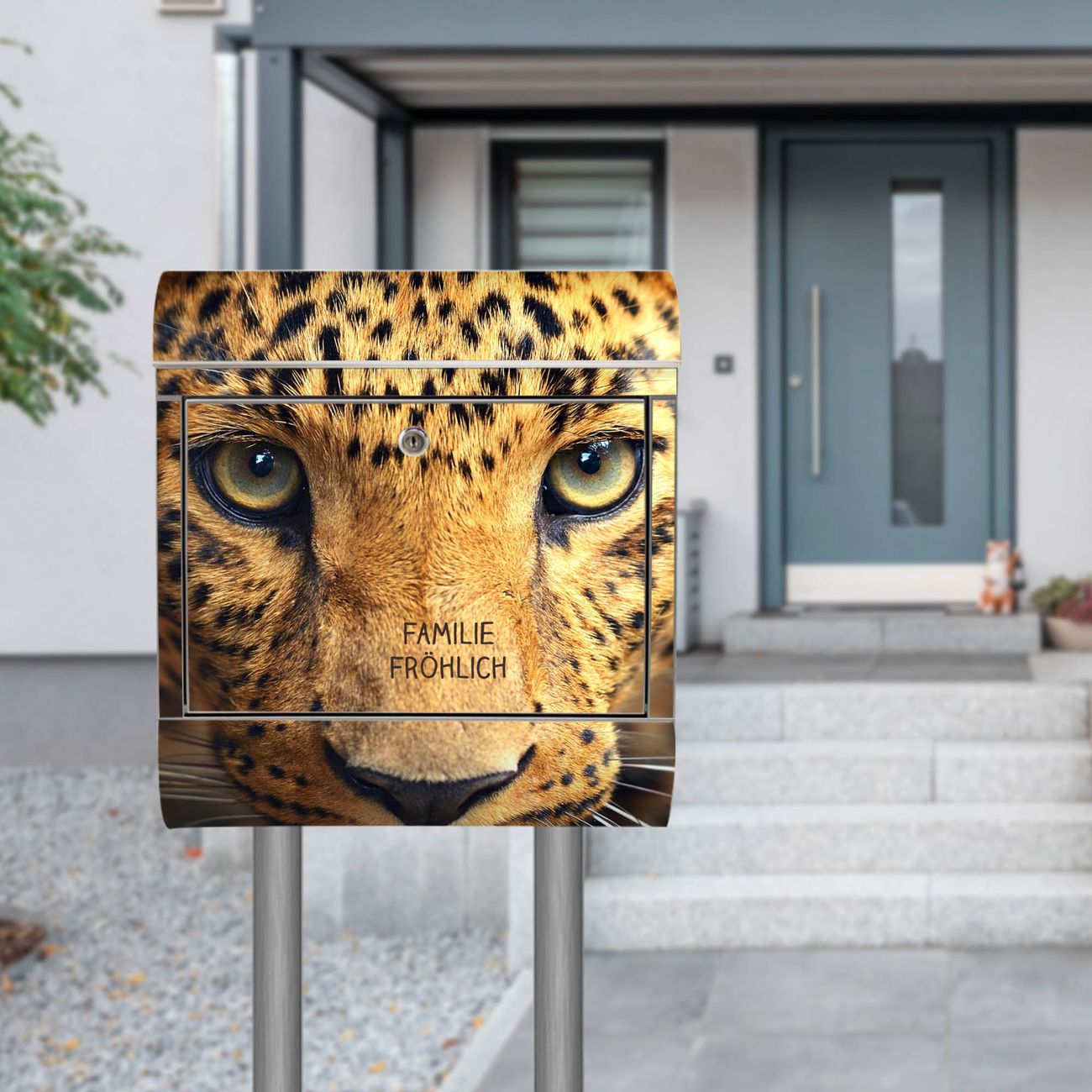 Der Motivstandbriefkasten hat ein sehr ansprechendes und ausgefallenes Design, damit entlocken Sie Ihren Nachbarn und dem Postboten ein Lächeln. Heben Sie Sich ab von der tristen grauen Masse, ohne auf Funktionalität zu verzichten. Der Briefkasten besteht aus hochwertigem 18/0 Edelstahl und die Wetter- und UV-resistenten Folie mit Daphne Motiv ist zusätzlich mit einem Schutzlaminat überzogen. Der Standbriefkasten wird mit Montagematerial und zwei Schlüsseln geliefert.