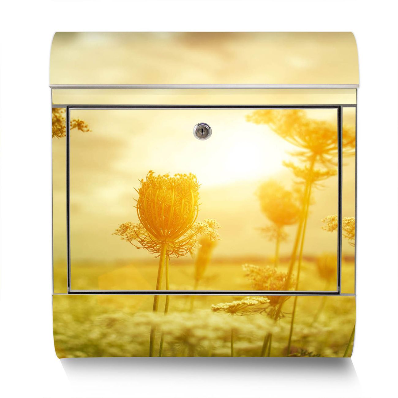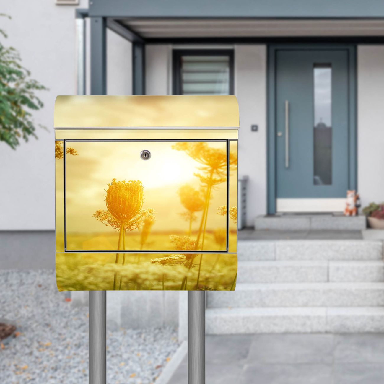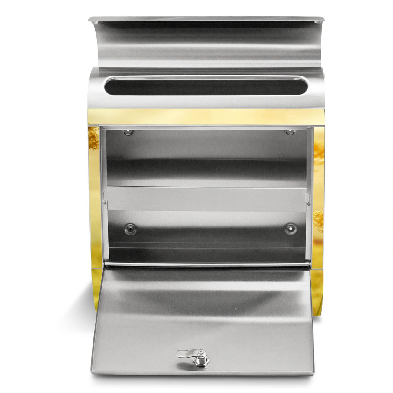 Der banjado Edelstahl Standbriefkasten mit Motiv Dill im Sonnenlicht bietet Ihnen mit seinem Fassungsvermögen genügend Platz auch für große A4 Sendungen. Das integrierte Zeitungsfach eignet sich hervorragend, um unkompliziert die Tageszeitung zu fassen.