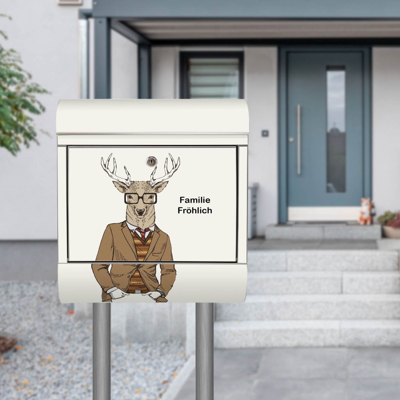 Der Motivstandbriefkasten hat ein sehr ansprechendes und ausgefallenes Design, damit entlocken Sie Ihren Nachbarn und dem Postboten ein Lächeln. Heben Sie Sich ab von der tristen grauen Masse, ohne auf Funktionalität zu verzichten. Der Briefkasten besteht aus hochwertigem 18/0 Edelstahl und die Wetter- und UV-resistenten Folie mit Doktor Hirsch Motiv ist zusätzlich mit einem Schutzlaminat überzogen. Der Standbriefkasten wird mit Montagematerial und zwei Schlüsseln geliefert.