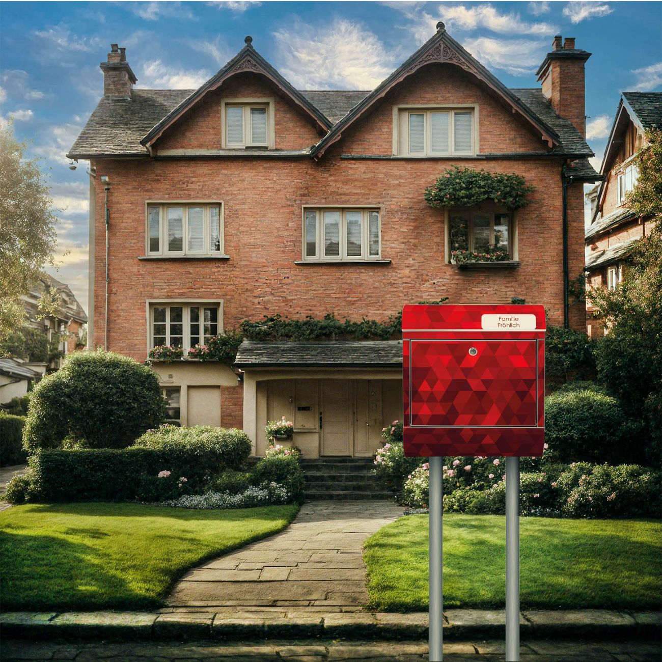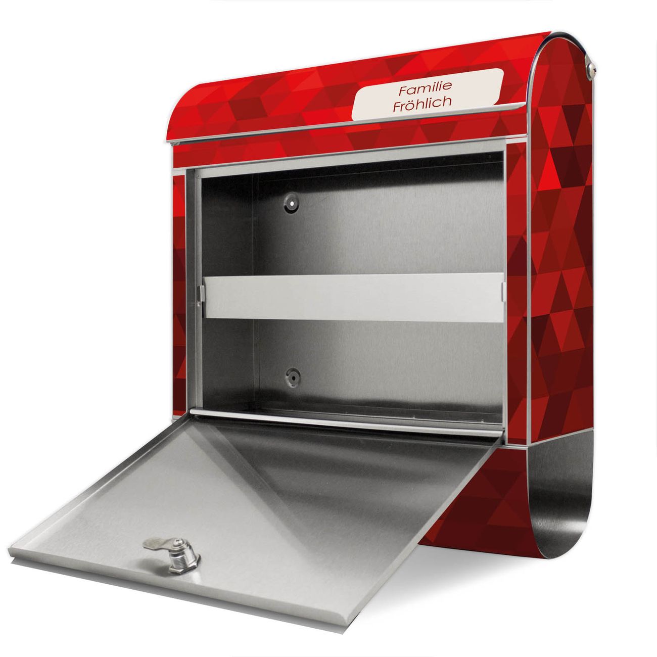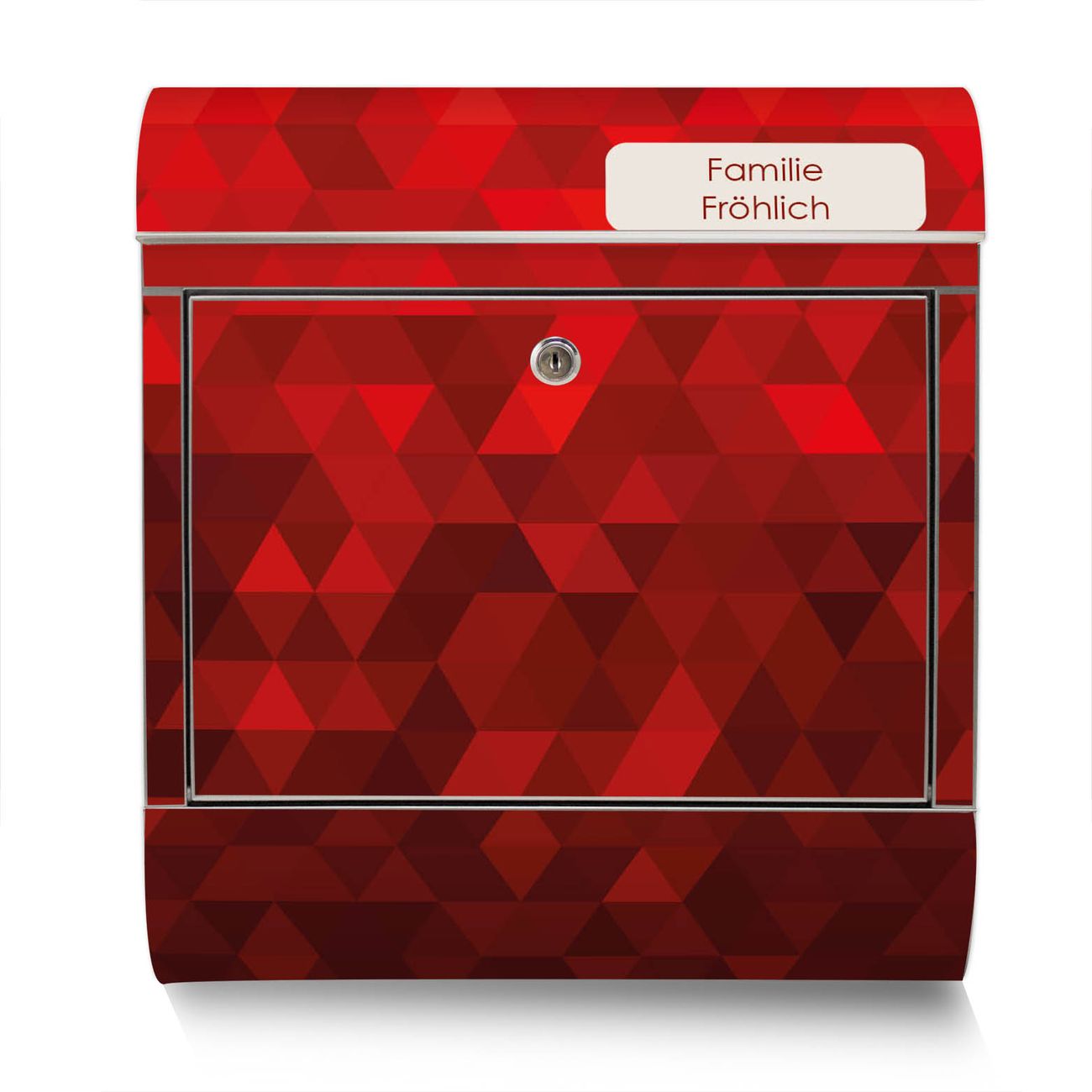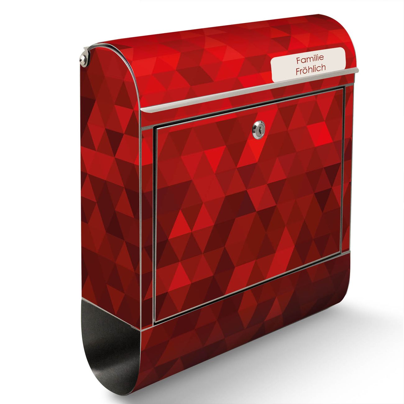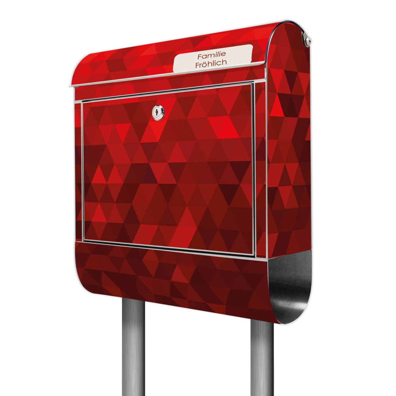 Der Motivstandbriefkasten hat ein sehr ansprechendes und ausgefallenes Design, damit entlocken Sie Ihren Nachbarn und dem Postboten ein Lächeln. Heben Sie Sich ab von der tristen grauen Masse, ohne auf Funktionalität zu verzichten. Der Briefkasten besteht aus hochwertigem 18/0 Edelstahl und die Wetter- und UV-resistenten Folie mit Dreiecke Rot Motiv ist zusätzlich mit einem Schutzlaminat überzogen. Der Standbriefkasten wird mit Montagematerial und zwei Schlüsseln geliefert.