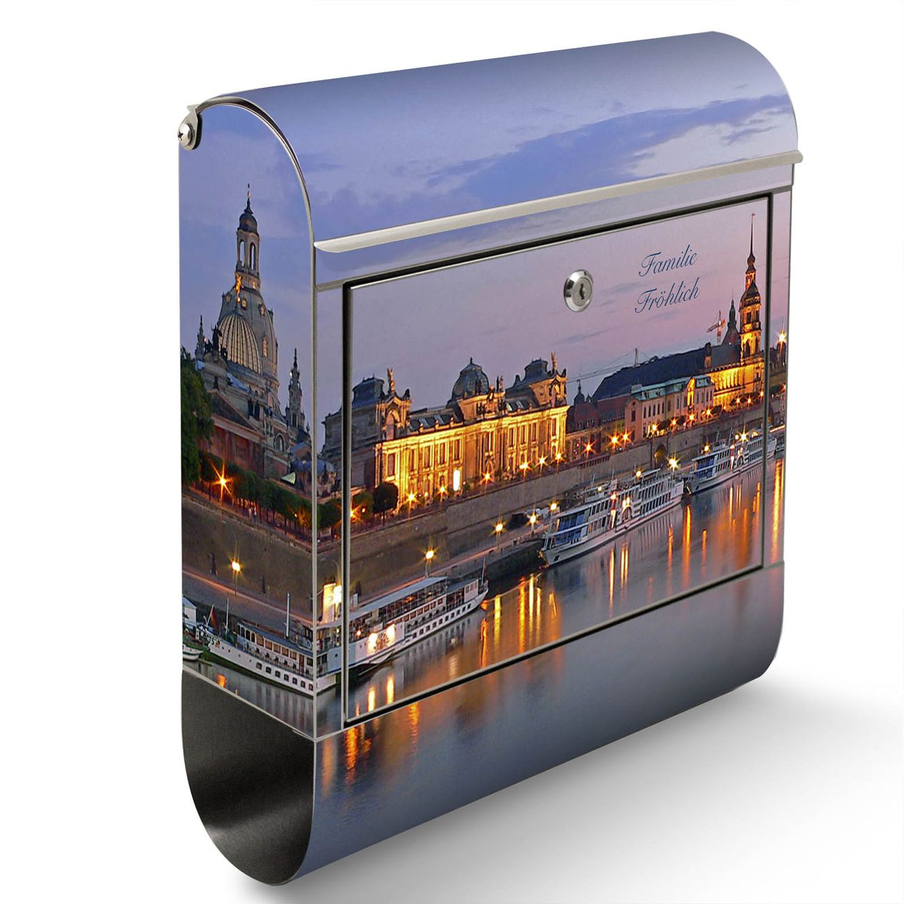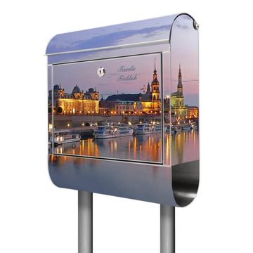 Der banjado Edelstahl Standbriefkasten mit Motiv Dresden und eigenem Wunschtext bietet Ihnen mit seinem Fassungsvermögen genügend Platz auch für große A4 Sendungen. Das integrierte Zeitungsfach eignet sich hervorragend, um unkompliziert die Tageszeitung zu fassen.