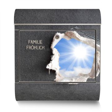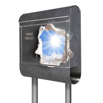 Der banjado Edelstahl Standbriefkasten mit Motiv Durchblick und eigenem Wunschtext bietet Ihnen mit seinem Fassungsvermögen genügend Platz auch für große A4 Sendungen. Das integrierte Zeitungsfach eignet sich hervorragend, um unkompliziert die Tageszeitung zu fassen.