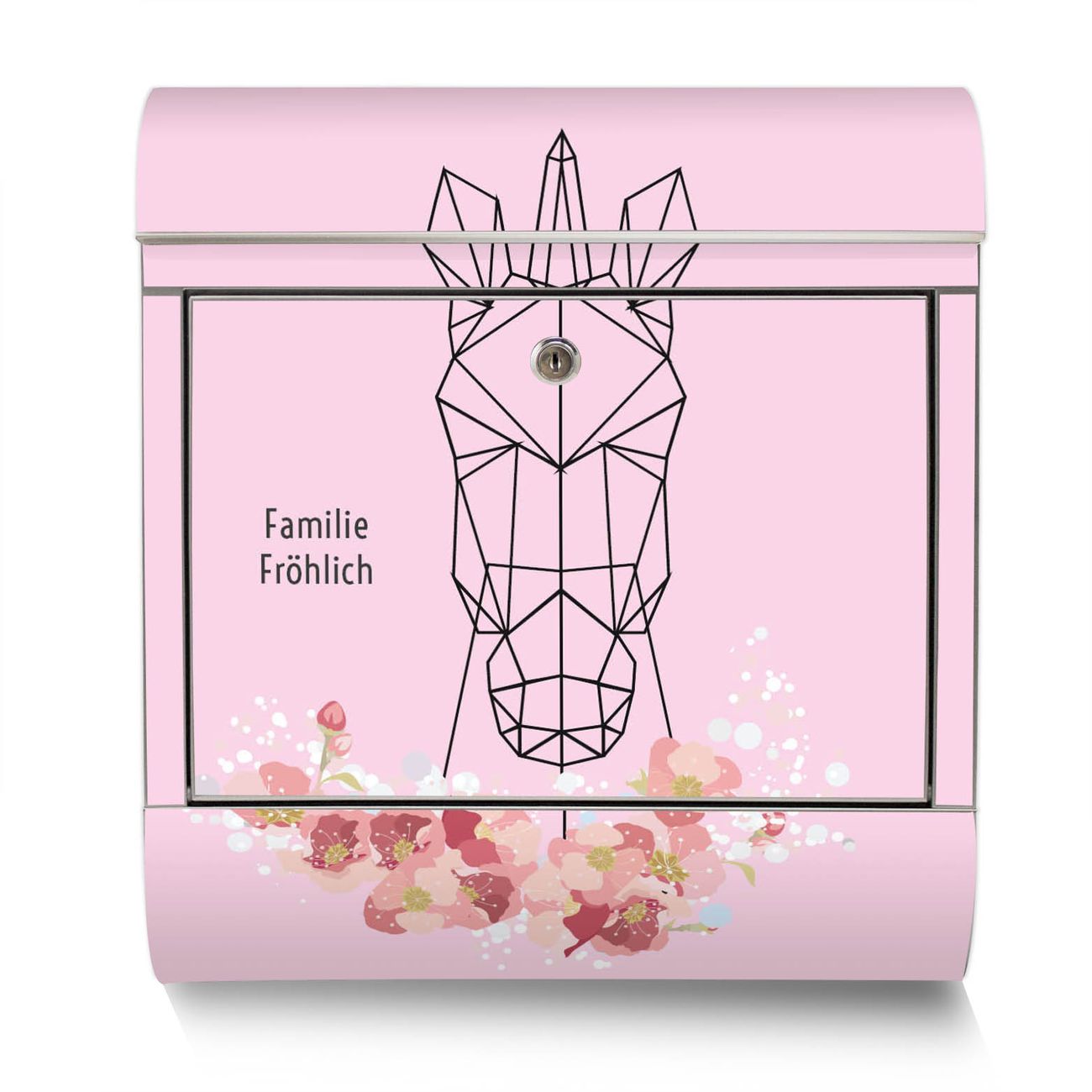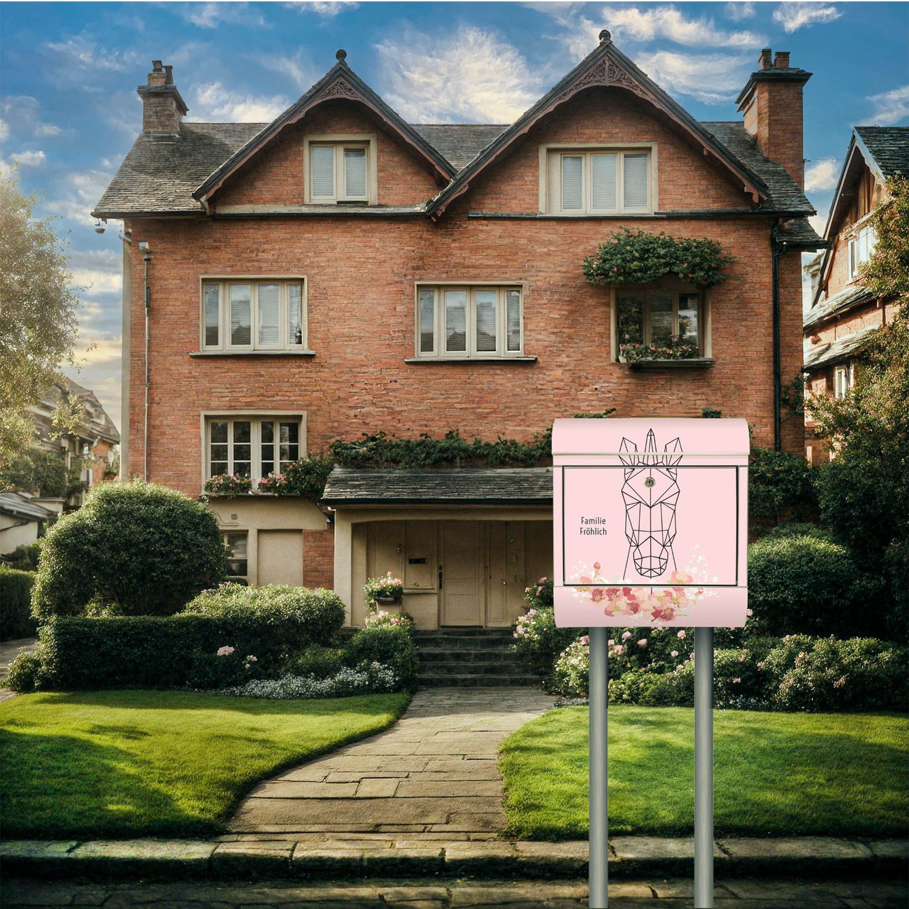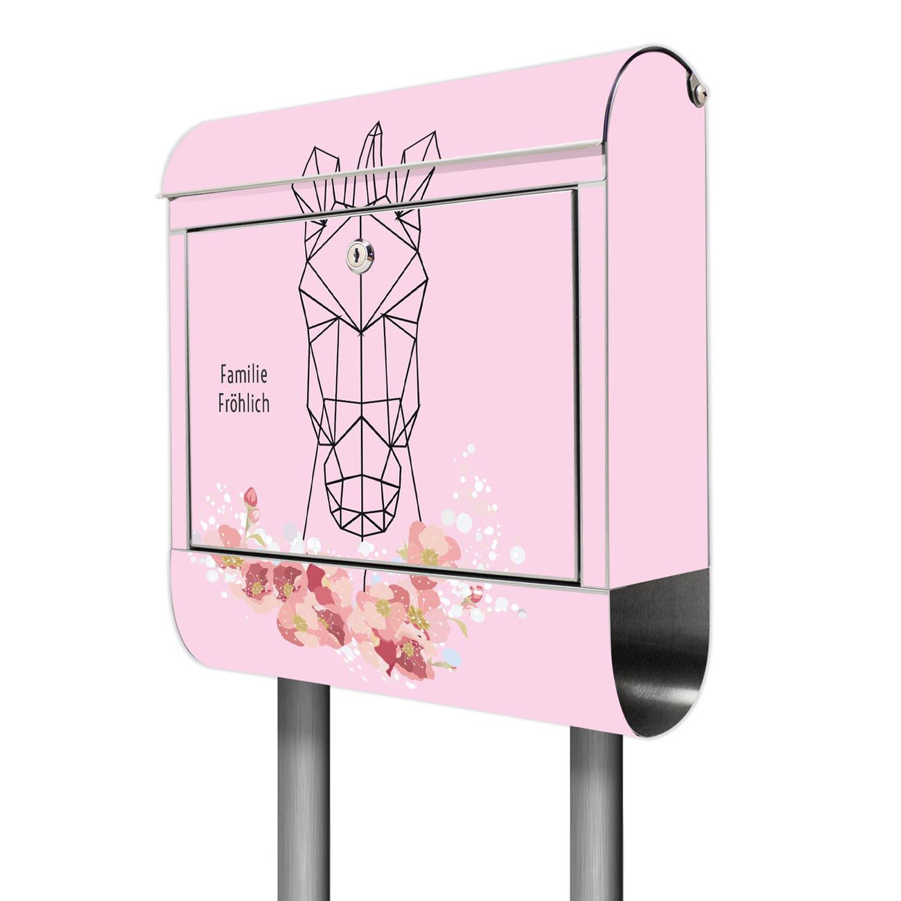 Der banjado Edelstahl Standbriefkasten mit Motiv Einhorn Poygon und eigenem Wunschtext bietet Ihnen mit seinem Fassungsvermögen genügend Platz auch für große A4 Sendungen. Das integrierte Zeitungsfach eignet sich hervorragend, um unkompliziert die Tageszeitung zu fassen.