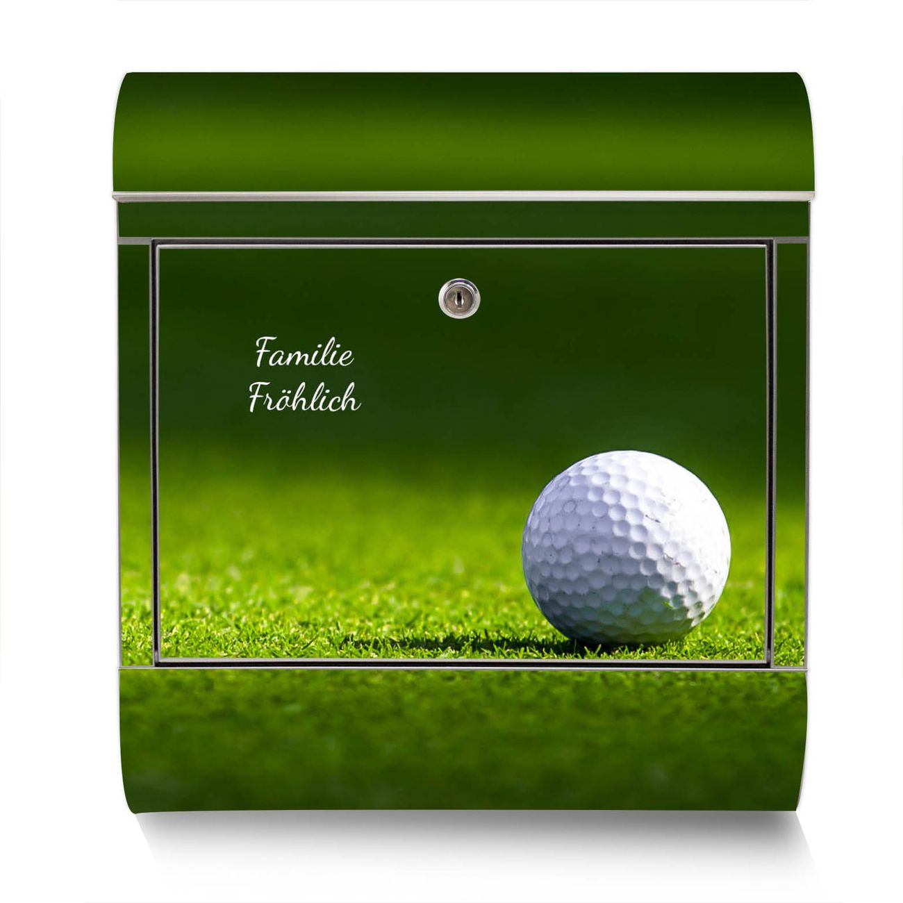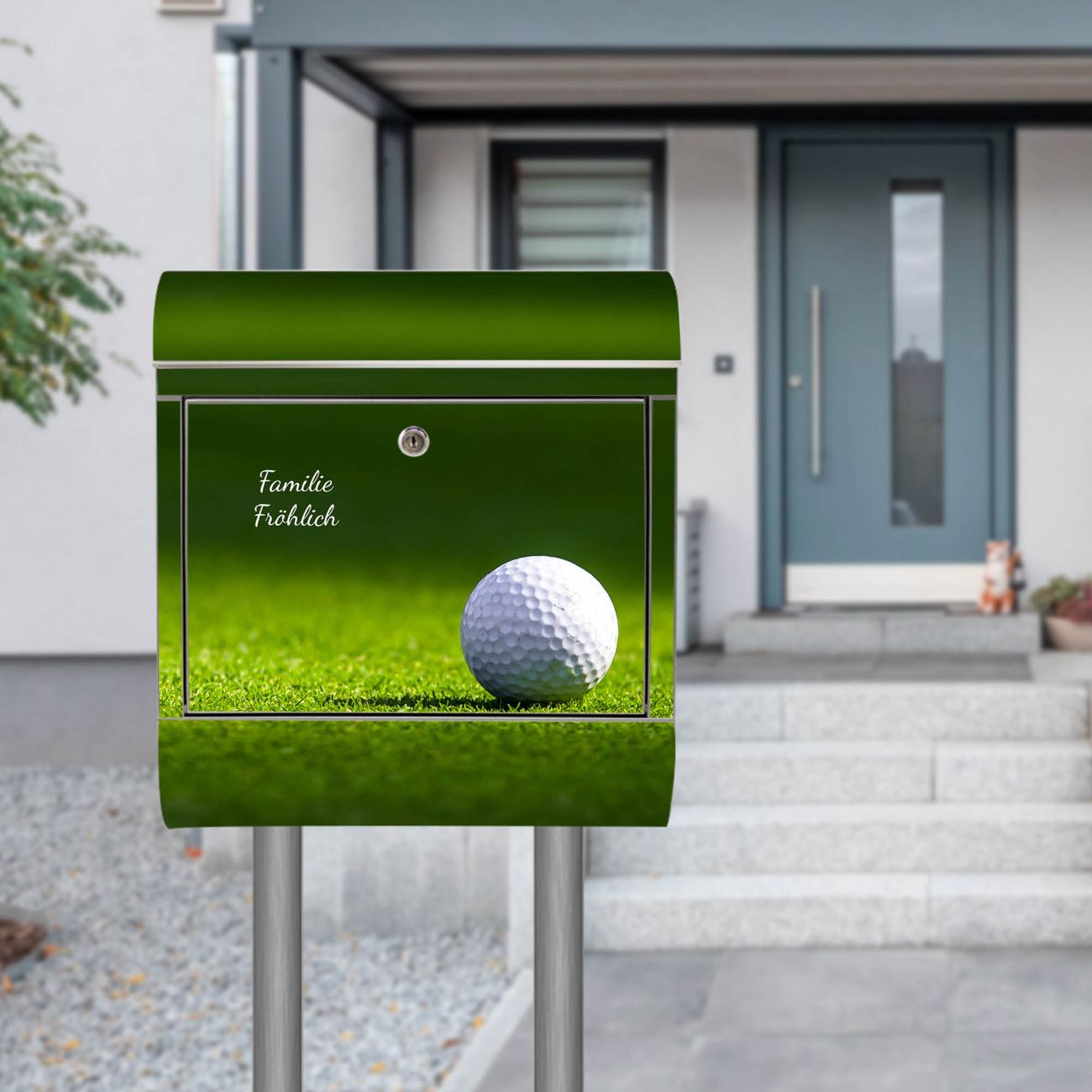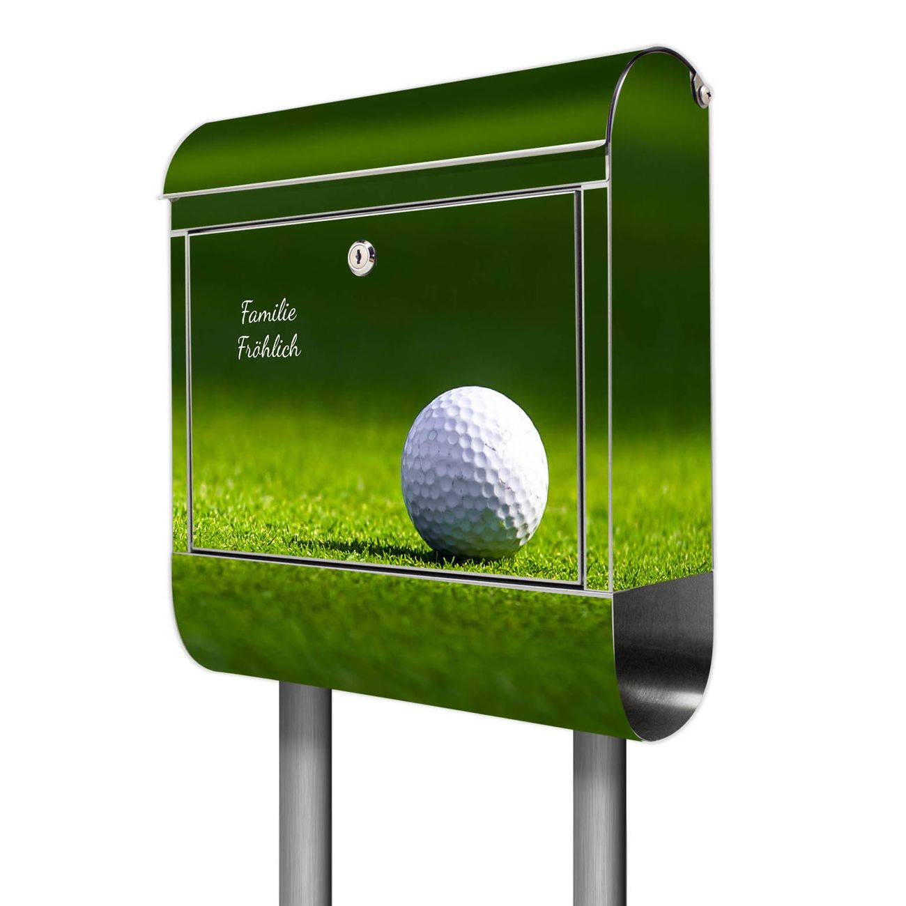 Der banjado Edelstahl Standbriefkasten mit Motiv Einsamer Golfball und eigenem Wunschtext bietet Ihnen mit seinem Fassungsvermögen genügend Platz auch für große A4 Sendungen. Das integrierte Zeitungsfach eignet sich hervorragend, um unkompliziert die Tageszeitung zu fassen.