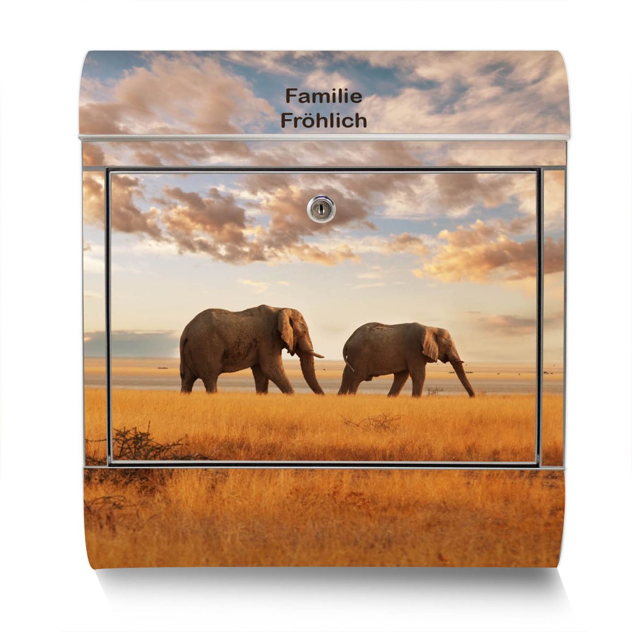 Der Motivstandbriefkasten hat ein sehr ansprechendes und ausgefallenes Design, damit entlocken Sie Ihren Nachbarn und dem Postboten ein Lächeln. Heben Sie Sich ab von der tristen grauen Masse, ohne auf Funktionalität zu verzichten. Der Briefkasten besteht aus hochwertigem 18/0 Edelstahl und die Wetter- und UV-resistenten Folie mit Elefanten Motiv ist zusätzlich mit einem Schutzlaminat überzogen. Der Standbriefkasten wird mit Montagematerial und zwei Schlüsseln geliefert.