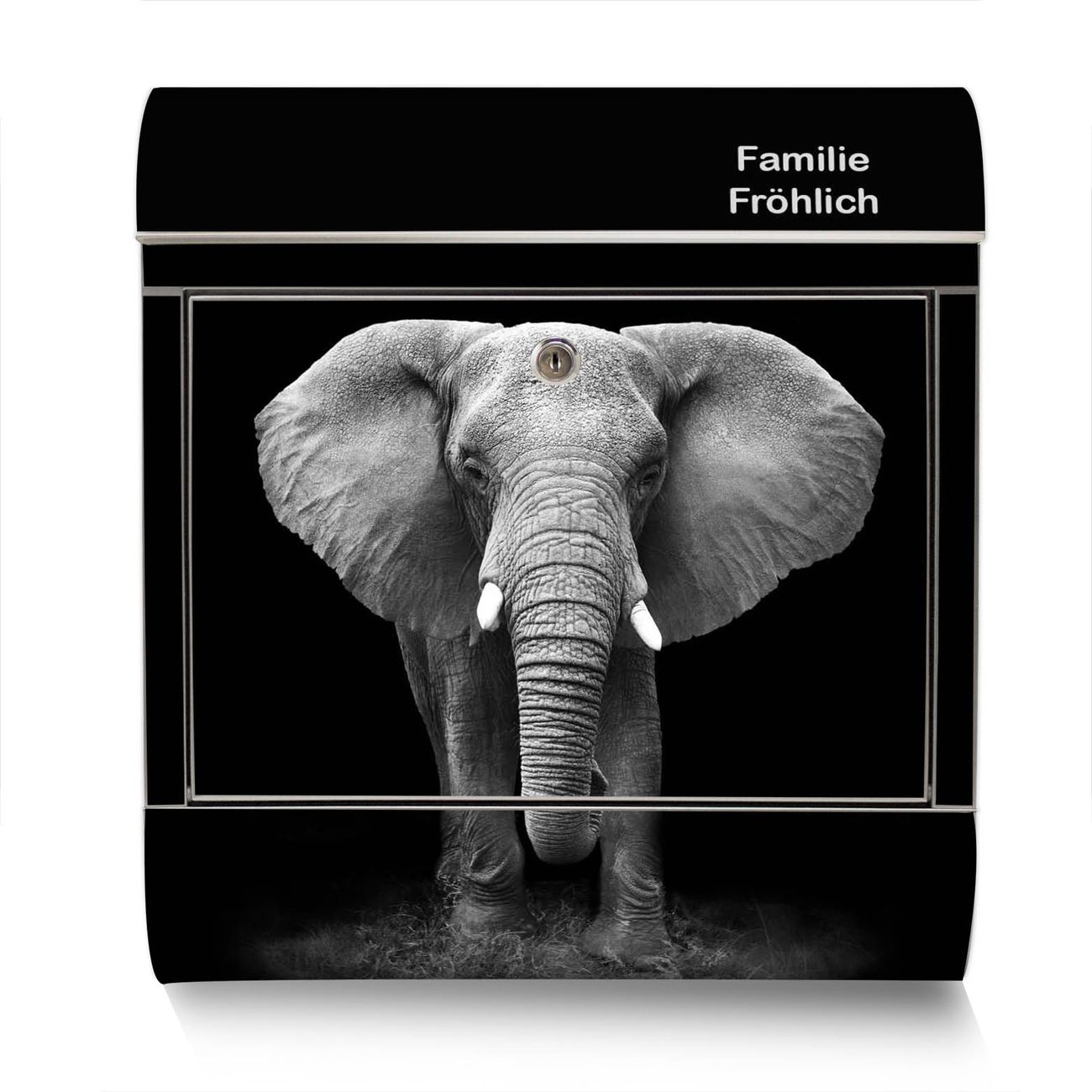 Der banjado Edelstahl Standbriefkasten mit Motiv Ella und eigenem Wunschtext bietet Ihnen mit seinem Fassungsvermögen genügend Platz auch für große A4 Sendungen. Das integrierte Zeitungsfach eignet sich hervorragend, um unkompliziert die Tageszeitung zu fassen.