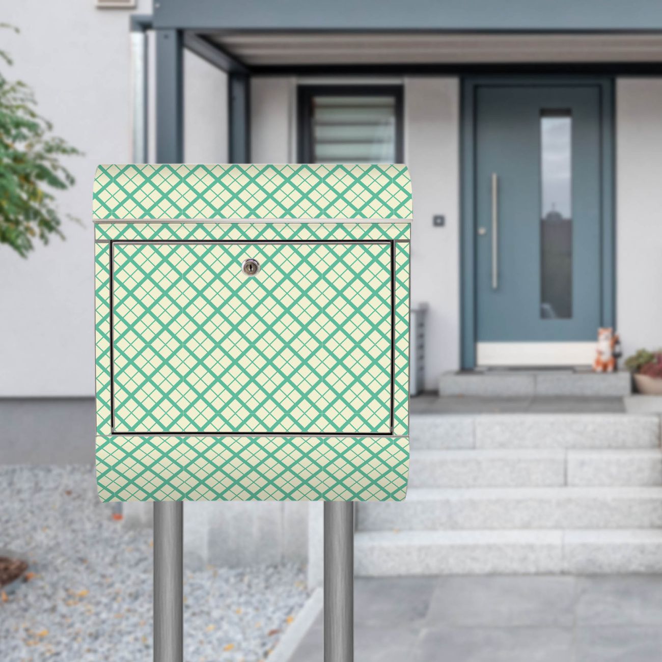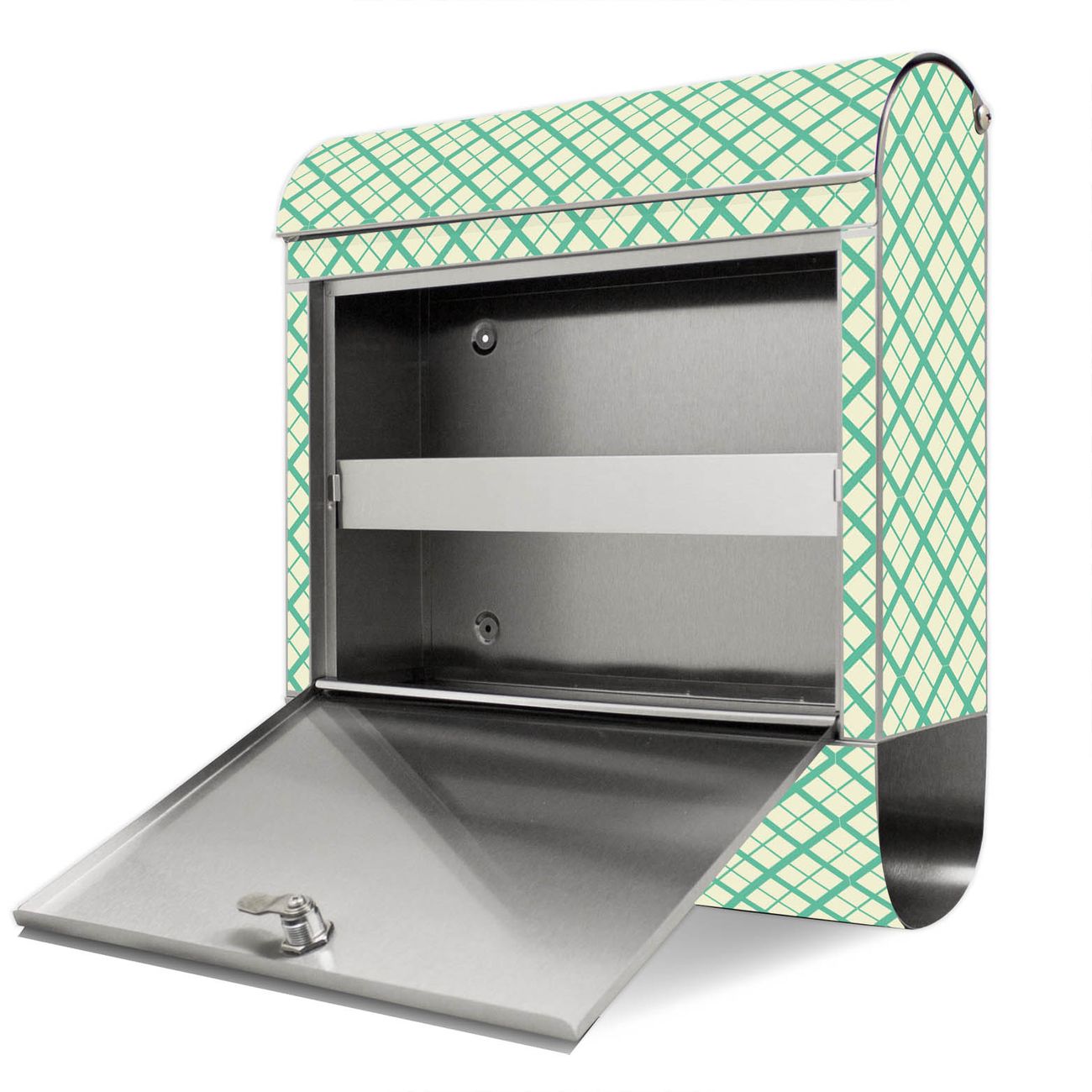 Der Motivstandbriefkasten hat ein sehr ansprechendes und ausgefallenes Design, damit entlocken Sie Ihren Nachbarn und dem Postboten ein Lächeln. Heben Sie Sich ab von der tristen grauen Masse, ohne auf Funktionalität zu verzichten. Der Briefkasten besteht aus hochwertigem 18/0 Edelstahl und die Wetter- und UV-resistenten Folie mit Feines Rautenmuster Motiv ist zusätzlich mit einem Schutzlaminat überzogen. Der Standbriefkasten wird mit Montagematerial und zwei Schlüsseln geliefert.
