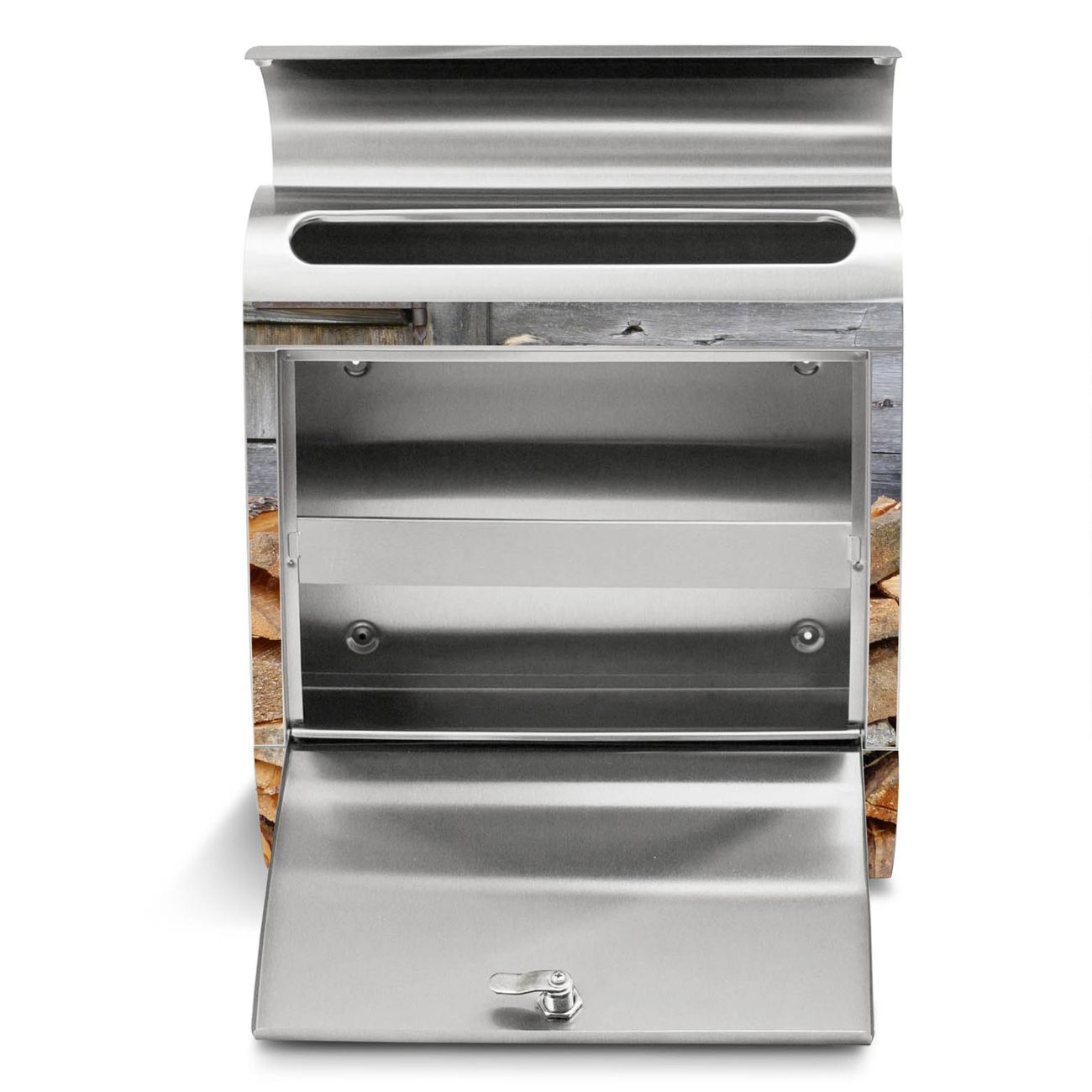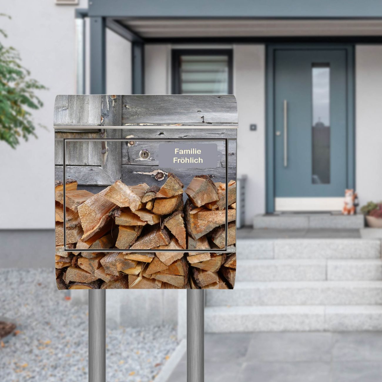 Der banjado Edelstahl Standbriefkasten mit Motiv Feuerholz und eigenem Wunschtext bietet Ihnen mit seinem Fassungsvermögen genügend Platz auch für große A4 Sendungen. Das integrierte Zeitungsfach eignet sich hervorragend, um unkompliziert die Tageszeitung zu fassen.