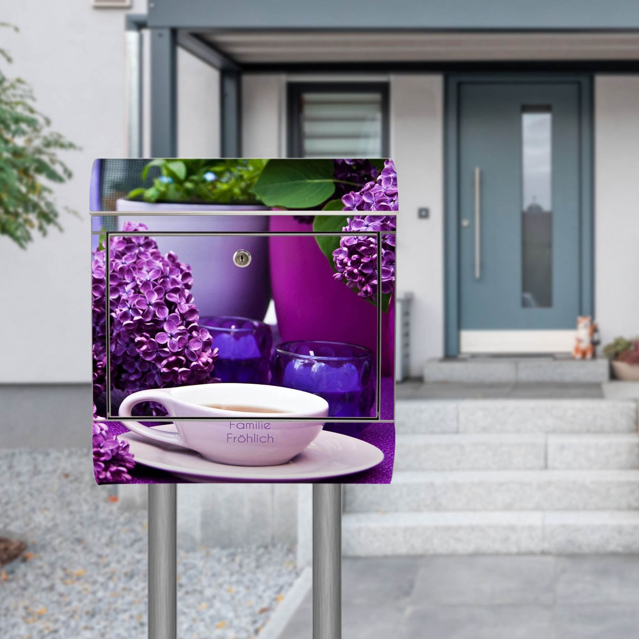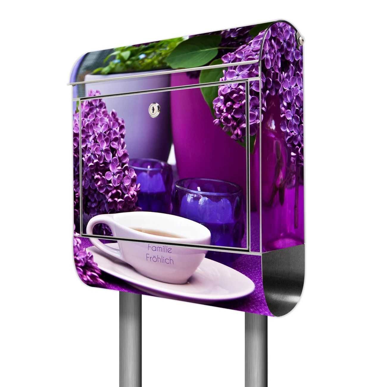 Der Motivstandbriefkasten hat ein sehr ansprechendes und ausgefallenes Design, damit entlocken Sie Ihren Nachbarn und dem Postboten ein Lächeln. Heben Sie Sich ab von der tristen grauen Masse, ohne auf Funktionalität zu verzichten. Der Briefkasten besteht aus hochwertigem 18/0 Edelstahl und die Wetter- und UV-resistenten Folie mit Flieder Motiv ist zusätzlich mit einem Schutzlaminat überzogen. Der Standbriefkasten wird mit Montagematerial und zwei Schlüsseln geliefert.