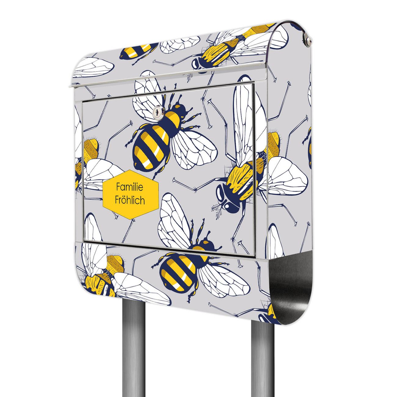 Standbriefkasten Edelstahl Fliegen und Bienen