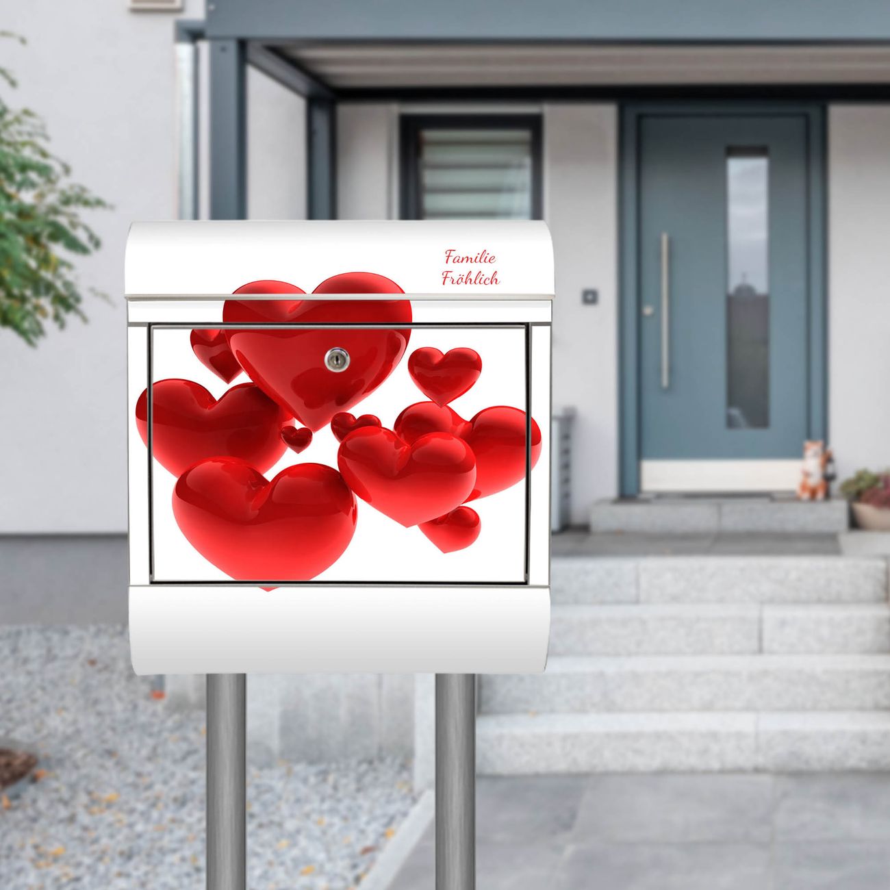 Standbriefkasten Edelstahl Fliegende Herzen