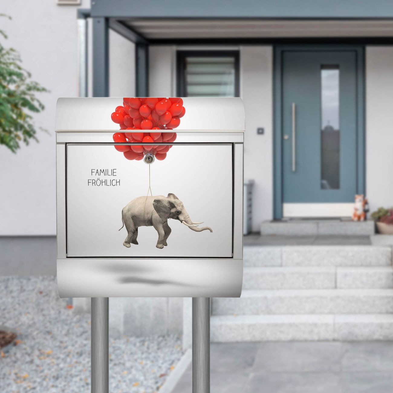 Standbriefkasten Edelstahl Fliegender Elefant