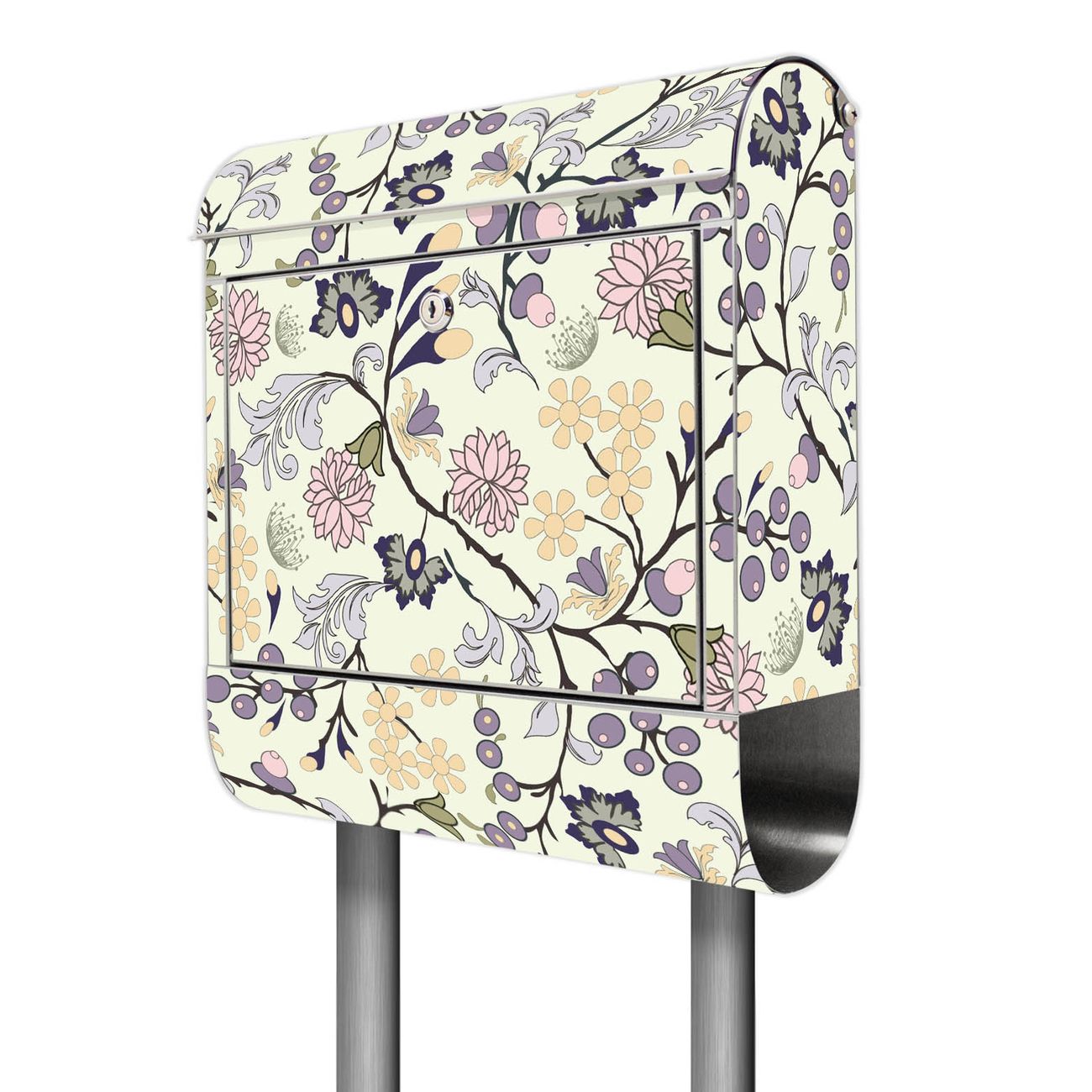 Der Motivstandbriefkasten hat ein sehr ansprechendes und ausgefallenes Design, damit entlocken Sie Ihren Nachbarn und dem Postboten ein Lächeln. Heben Sie Sich ab von der tristen grauen Masse, ohne auf Funktionalität zu verzichten. Der Briefkasten besteht aus hochwertigem 18/0 Edelstahl und die Wetter- und UV-resistenten Folie mit Florale Tapete Motiv ist zusätzlich mit einem Schutzlaminat überzogen. Der Standbriefkasten wird mit Montagematerial und zwei Schlüsseln geliefert.