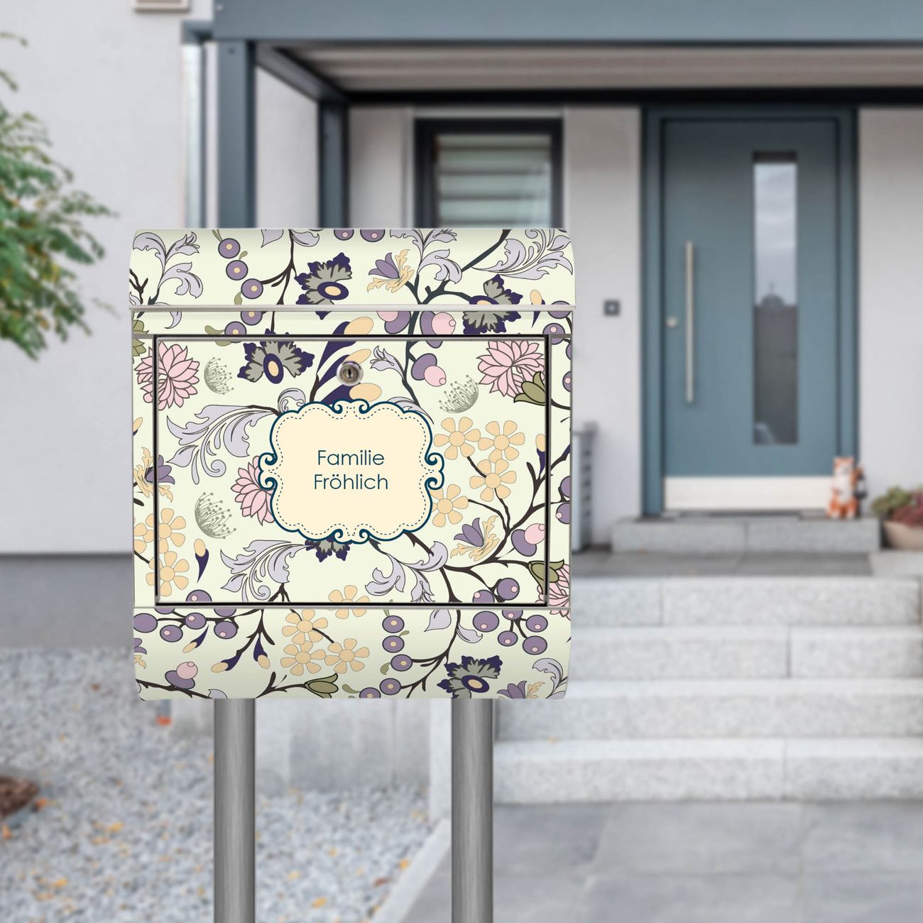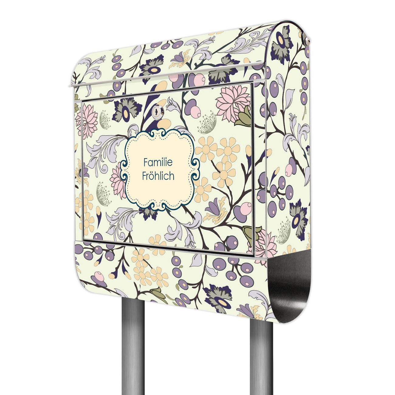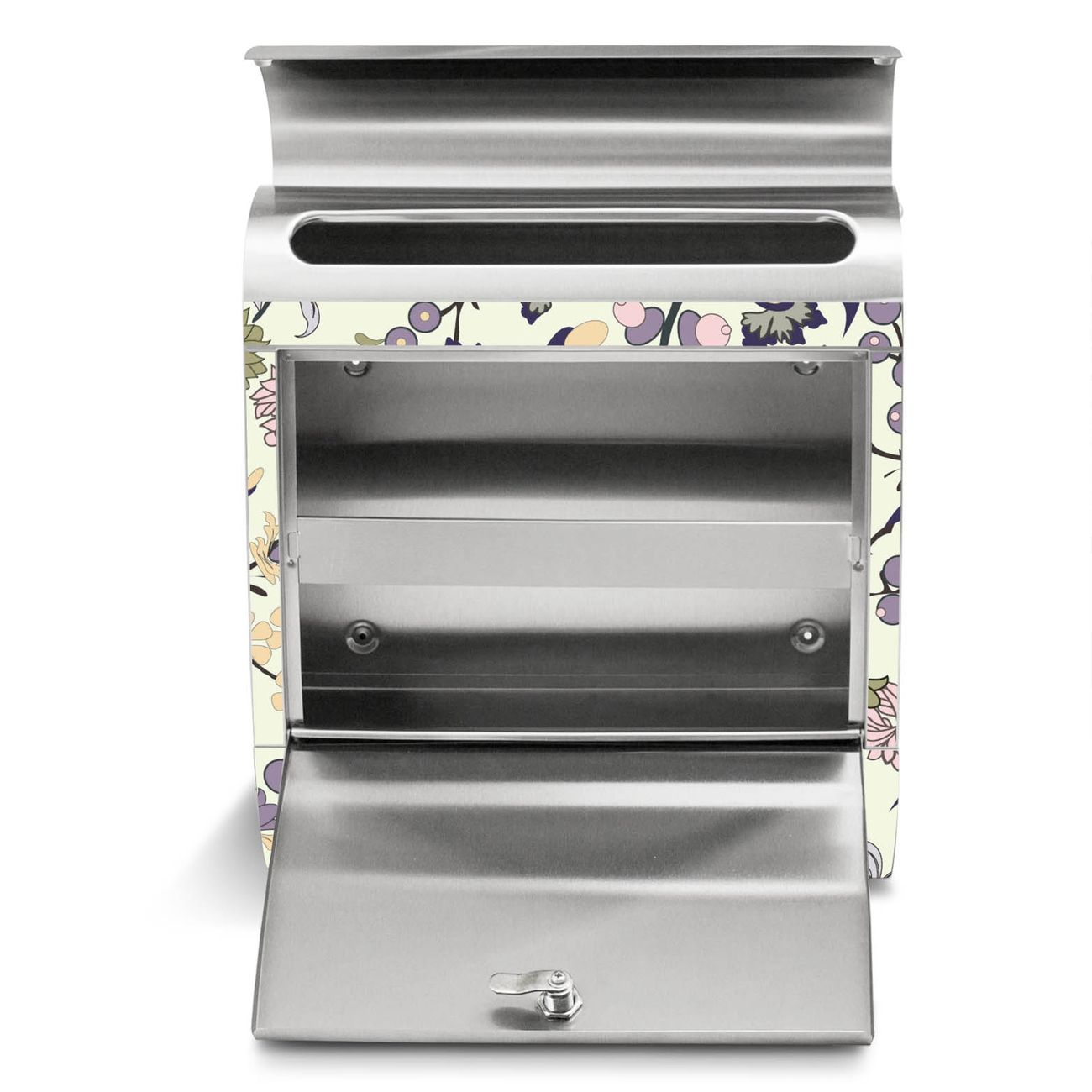 Der Motivstandbriefkasten hat ein sehr ansprechendes und ausgefallenes Design, damit entlocken Sie Ihren Nachbarn und dem Postboten ein Lächeln. Heben Sie Sich ab von der tristen grauen Masse, ohne auf Funktionalität zu verzichten. Der Briefkasten besteht aus hochwertigem 18/0 Edelstahl und die Wetter- und UV-resistenten Folie mit Florale Tapete Motiv ist zusätzlich mit einem Schutzlaminat überzogen. Der Standbriefkasten wird mit Montagematerial und zwei Schlüsseln geliefert.