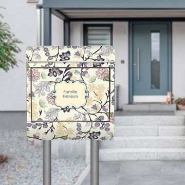 Der banjado Edelstahl Standbriefkasten mit Motiv Florale Tapete und eigenem Wunschtext bietet Ihnen mit seinem Fassungsvermögen genügend Platz auch für große A4 Sendungen. Das integrierte Zeitungsfach eignet sich hervorragend, um unkompliziert die Tageszeitung zu fassen.