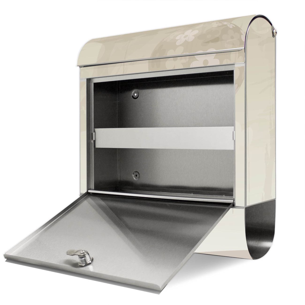 Der banjado Edelstahl Standbriefkasten mit Motiv Flüchtiges Glück und eigenem Wunschtext bietet Ihnen mit seinem Fassungsvermögen genügend Platz auch für große A4 Sendungen. Das integrierte Zeitungsfach eignet sich hervorragend, um unkompliziert die Tageszeitung zu fassen.