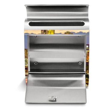 Der Motivstandbriefkasten hat ein sehr ansprechendes und ausgefallenes Design, damit entlocken Sie Ihren Nachbarn und dem Postboten ein Lächeln. Heben Sie Sich ab von der tristen grauen Masse, ohne auf Funktionalität zu verzichten. Der Briefkasten besteht aus hochwertigem 18/0 Edelstahl und die Wetter- und UV-resistenten Folie mit Frankfurt Main Motiv ist zusätzlich mit einem Schutzlaminat überzogen. Der Standbriefkasten wird mit Montagematerial und zwei Schlüsseln geliefert.