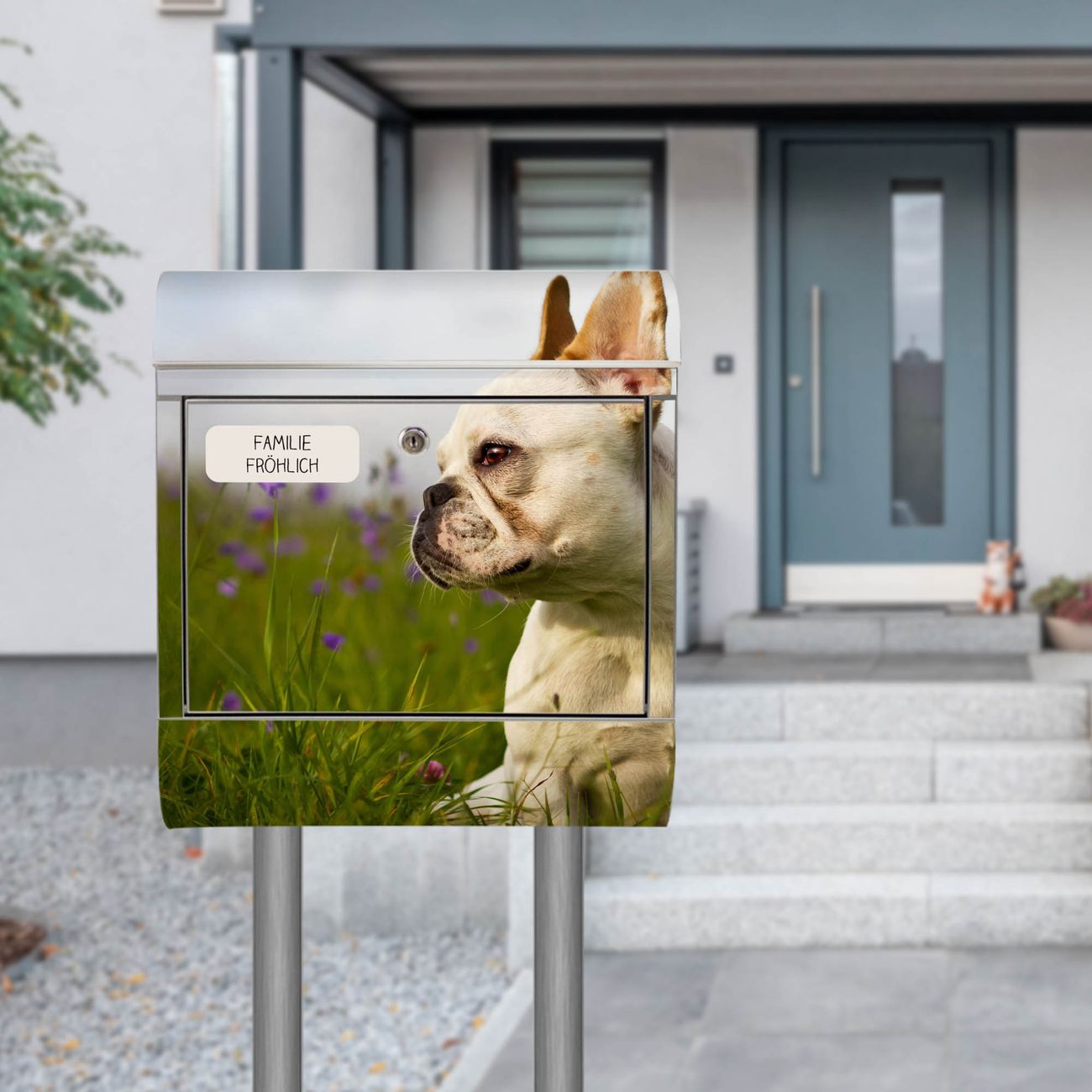 Standbriefkasten Edelstahl Französische Bulldogge