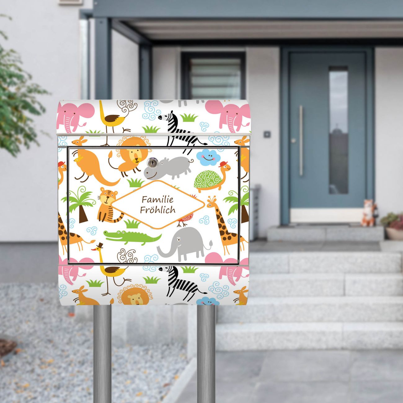 Standbriefkasten Edelstahl Fröhliche Tiere