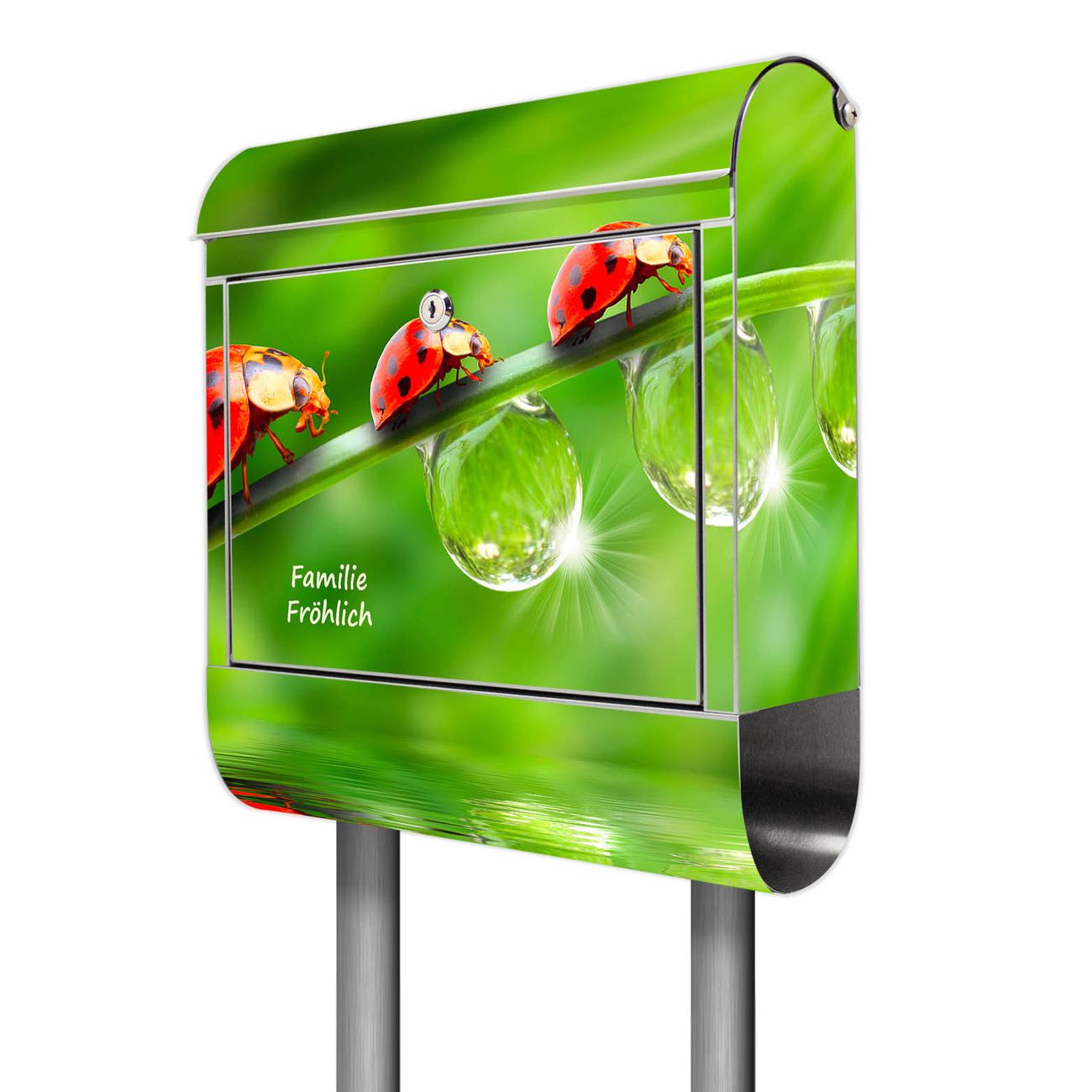 Der Motivstandbriefkasten hat ein sehr ansprechendes und ausgefallenes Design, damit entlocken Sie Ihren Nachbarn und dem Postboten ein Lächeln. Heben Sie Sich ab von der tristen grauen Masse, ohne auf Funktionalität zu verzichten. Der Briefkasten besteht aus hochwertigem 18/0 Edelstahl und die Wetter- und UV-resistenten Folie mit Für Jeden Einen Motiv ist zusätzlich mit einem Schutzlaminat überzogen. Der Standbriefkasten wird mit Montagematerial und zwei Schlüsseln geliefert.