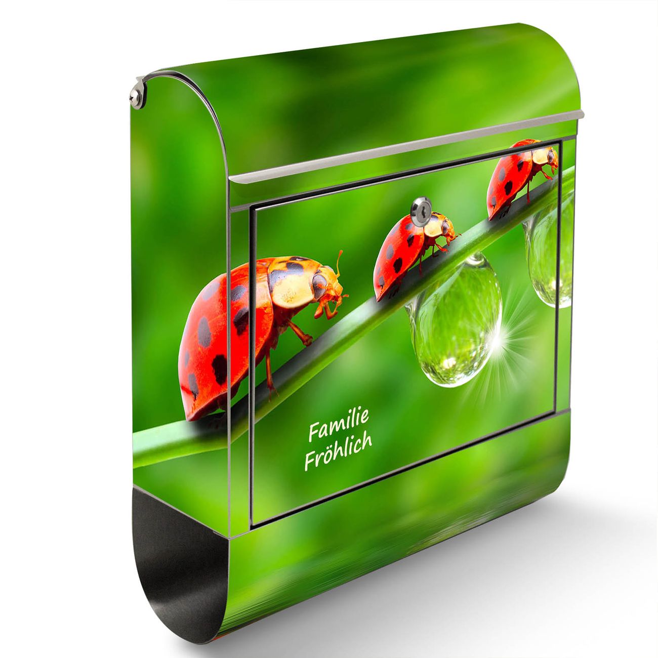 Der banjado Edelstahl Standbriefkasten mit Motiv Für Jeden Einen und eigenem Wunschtext bietet Ihnen mit seinem Fassungsvermögen genügend Platz auch für große A4 Sendungen. Das integrierte Zeitungsfach eignet sich hervorragend, um unkompliziert die Tageszeitung zu fassen.