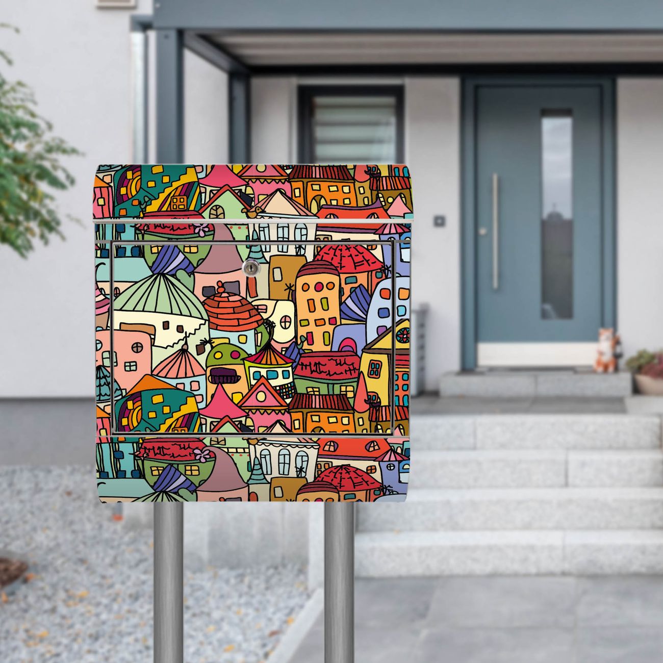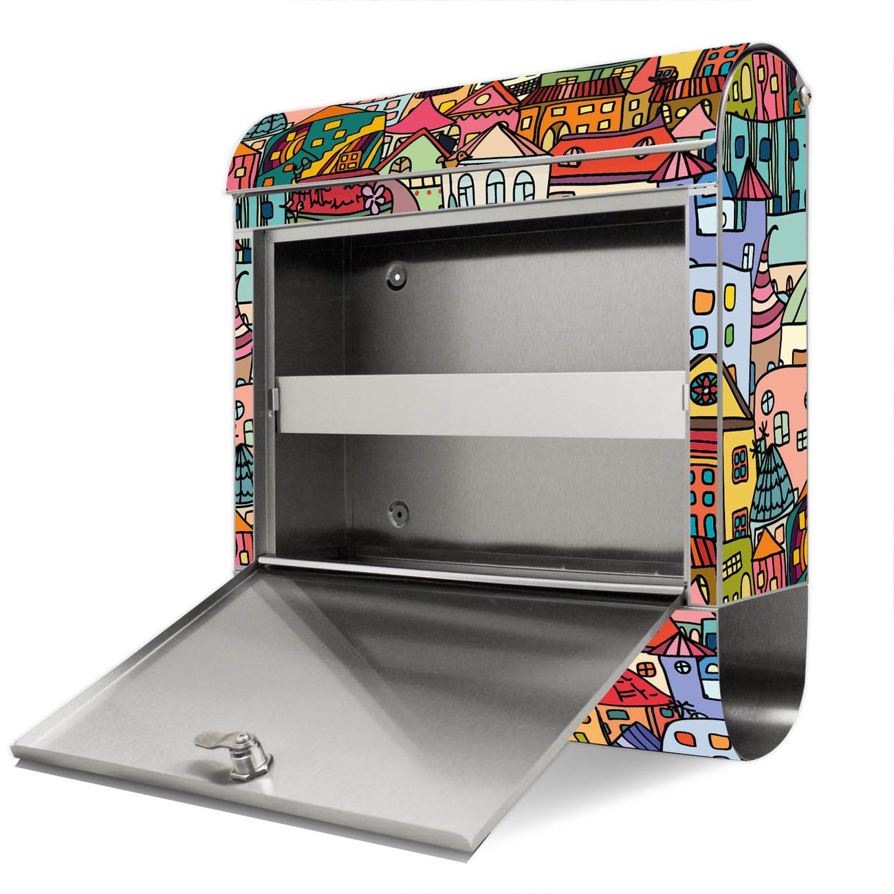 Der Motivstandbriefkasten hat ein sehr ansprechendes und ausgefallenes Design, damit entlocken Sie Ihren Nachbarn und dem Postboten ein Lächeln. Heben Sie Sich ab von der tristen grauen Masse, ohne auf Funktionalität zu verzichten. Der Briefkasten besteht aus hochwertigem 18/0 Edelstahl und die Wetter- und UV-resistenten Folie mit Funky Town Motiv ist zusätzlich mit einem Schutzlaminat überzogen. Der Standbriefkasten wird mit Montagematerial und zwei Schlüsseln geliefert.