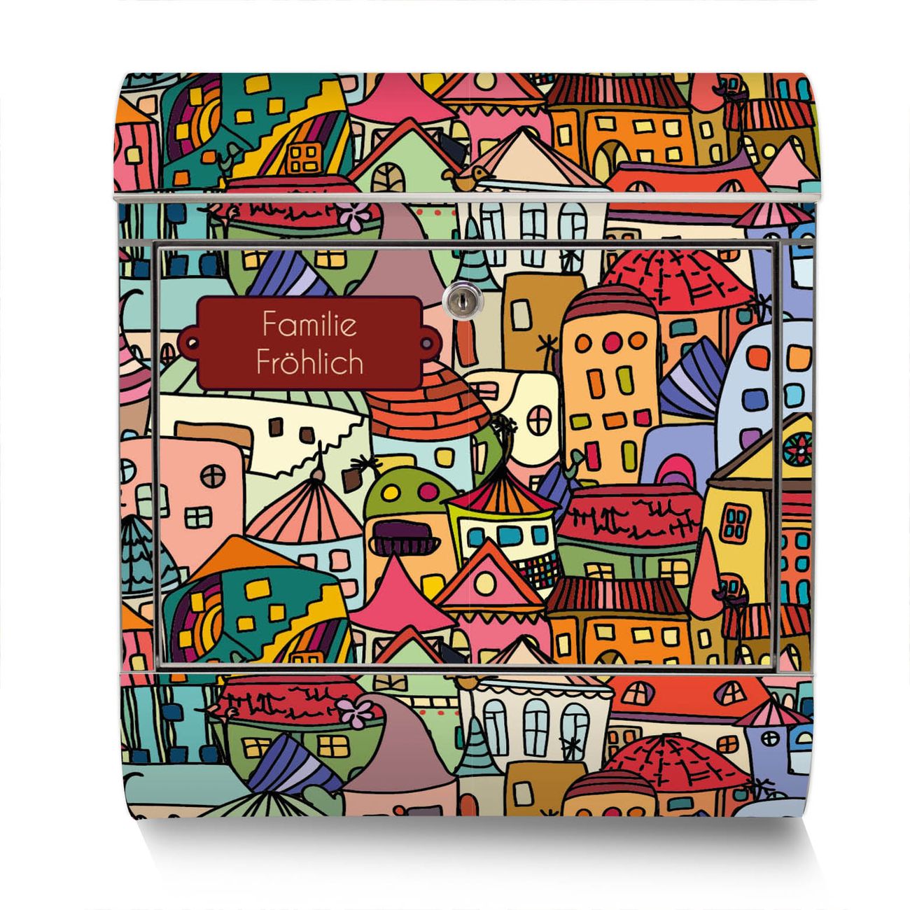 Der Motivstandbriefkasten hat ein sehr ansprechendes und ausgefallenes Design, damit entlocken Sie Ihren Nachbarn und dem Postboten ein Lächeln. Heben Sie Sich ab von der tristen grauen Masse, ohne auf Funktionalität zu verzichten. Der Briefkasten besteht aus hochwertigem 18/0 Edelstahl und die Wetter- und UV-resistenten Folie mit Funky Town Motiv ist zusätzlich mit einem Schutzlaminat überzogen. Der Standbriefkasten wird mit Montagematerial und zwei Schlüsseln geliefert.