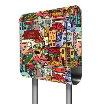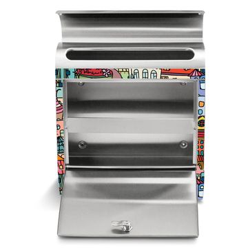 Der banjado Edelstahl Standbriefkasten mit Motiv Funky Town und eigenem Wunschtext bietet Ihnen mit seinem Fassungsvermögen genügend Platz auch für große A4 Sendungen. Das integrierte Zeitungsfach eignet sich hervorragend, um unkompliziert die Tageszeitung zu fassen.