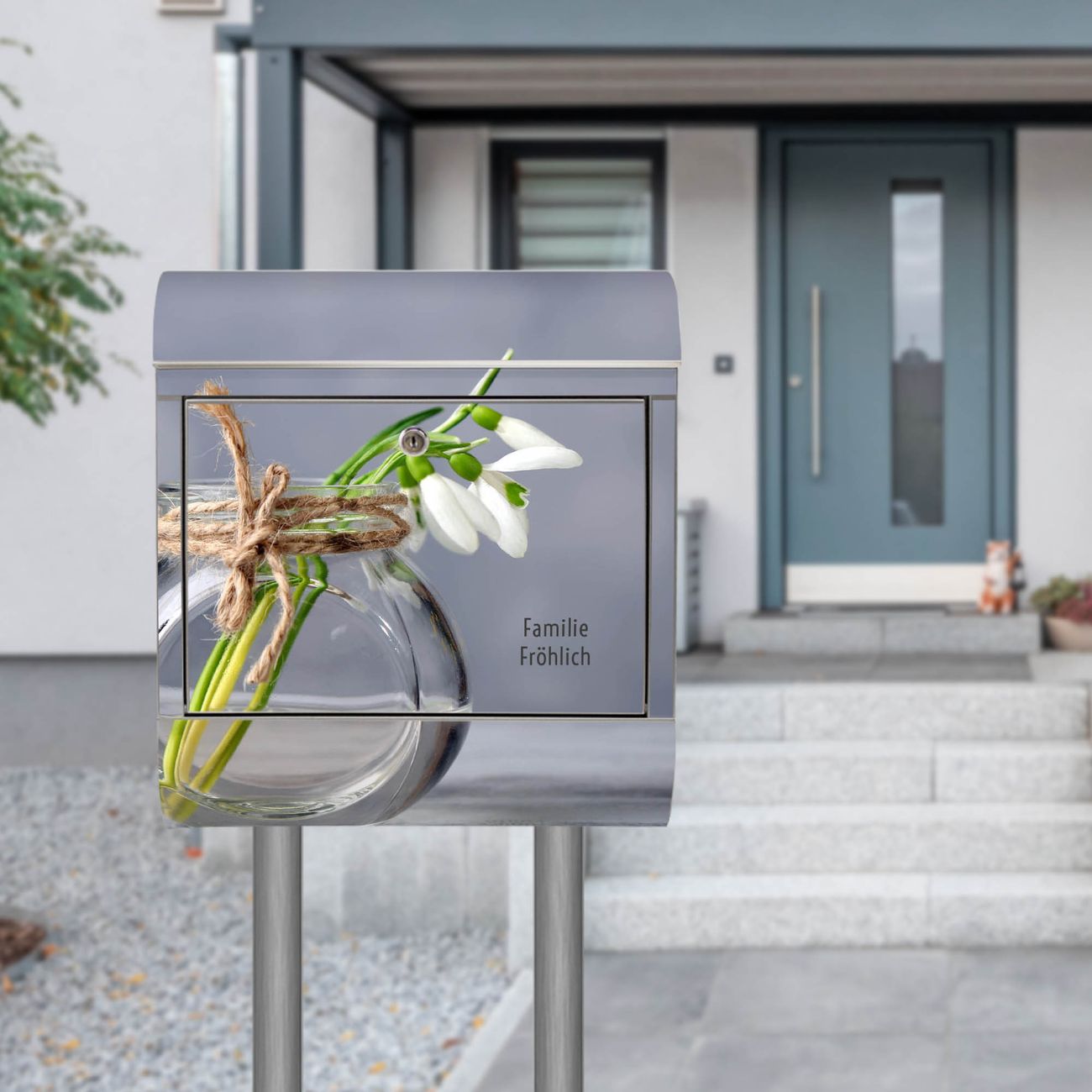 Standbriefkasten Edelstahl Gänseblümchen im Glas