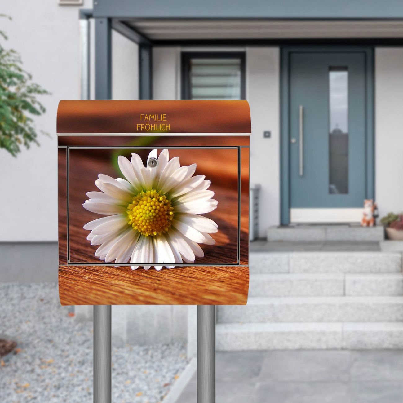 Standbriefkasten Edelstahl Gänseblümchen