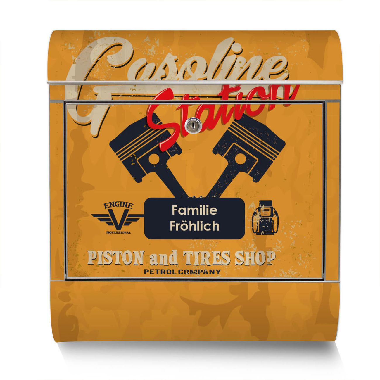 Der banjado Edelstahl Standbriefkasten mit Motiv Gasoline Station und eigenem Wunschtext bietet Ihnen mit seinem Fassungsvermögen genügend Platz auch für große A4 Sendungen. Das integrierte Zeitungsfach eignet sich hervorragend, um unkompliziert die Tageszeitung zu fassen.