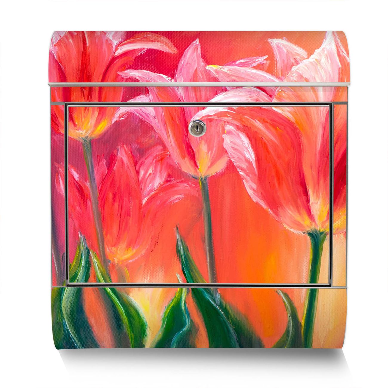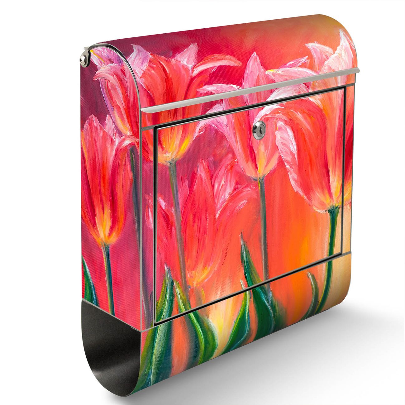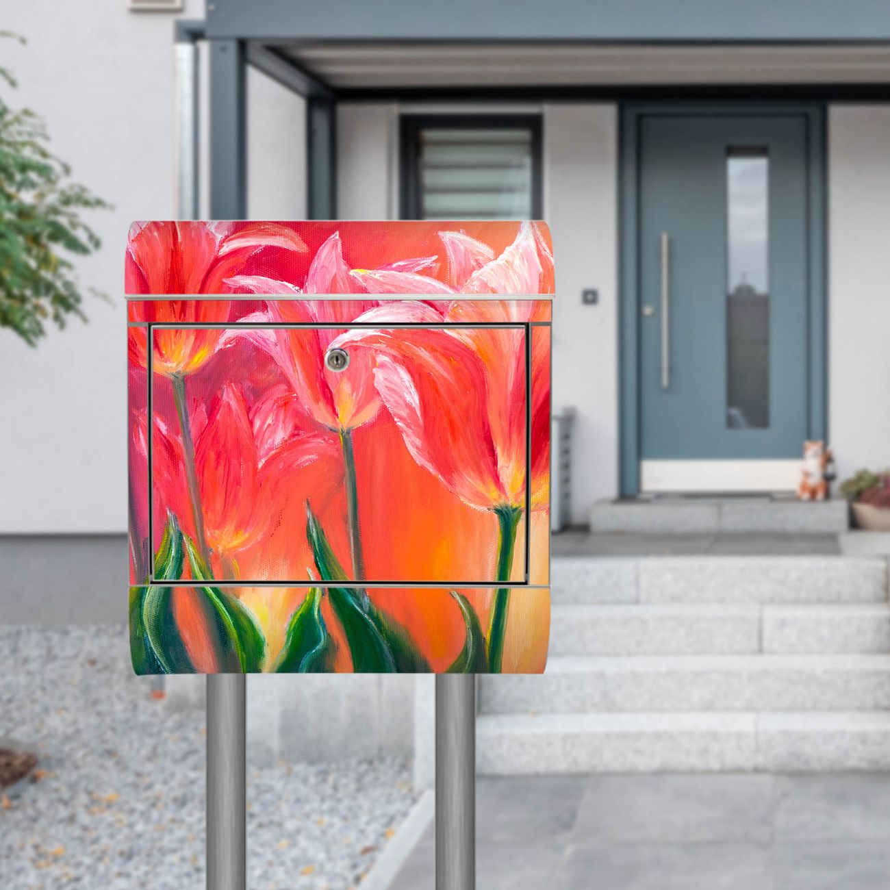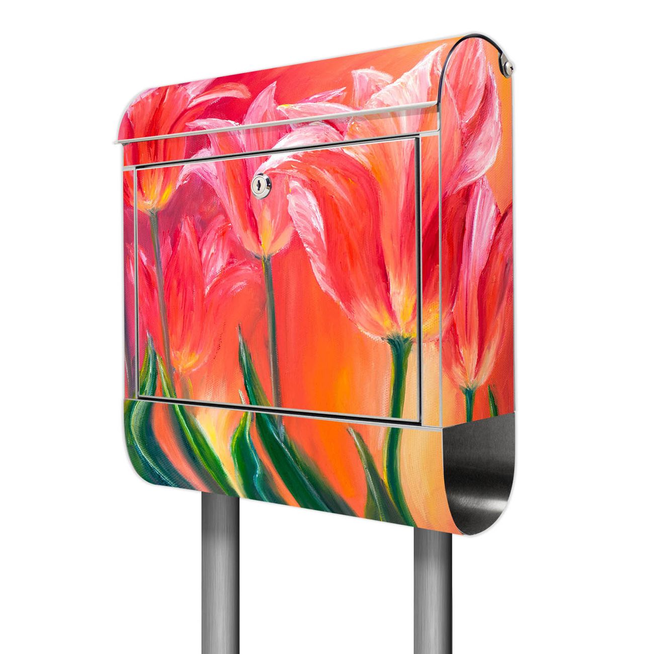 Standbriefkasten Edelstahl Gemalte Tulpen