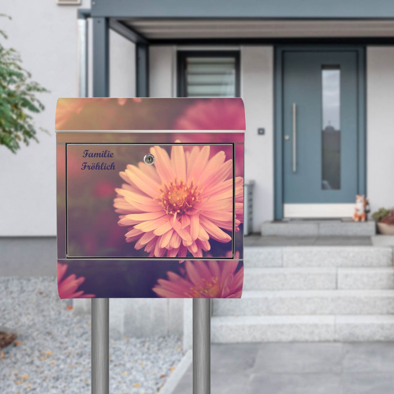 Standbriefkasten Edelstahl Gerbera 2