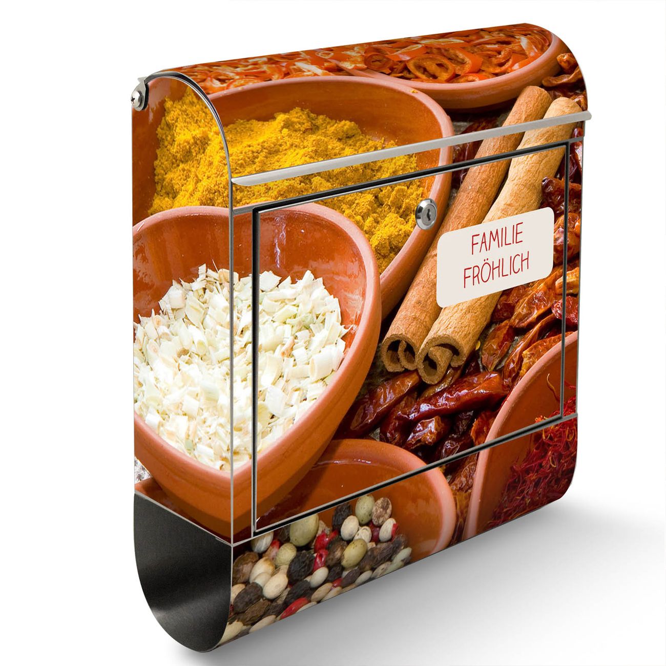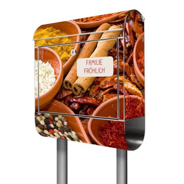 Der Motivstandbriefkasten hat ein sehr ansprechendes und ausgefallenes Design, damit entlocken Sie Ihren Nachbarn und dem Postboten ein Lächeln. Heben Sie Sich ab von der tristen grauen Masse, ohne auf Funktionalität zu verzichten. Der Briefkasten besteht aus hochwertigem 18/0 Edelstahl und die Wetter- und UV-resistenten Folie mit Gewürze Motiv ist zusätzlich mit einem Schutzlaminat überzogen. Der Standbriefkasten wird mit Montagematerial und zwei Schlüsseln geliefert.